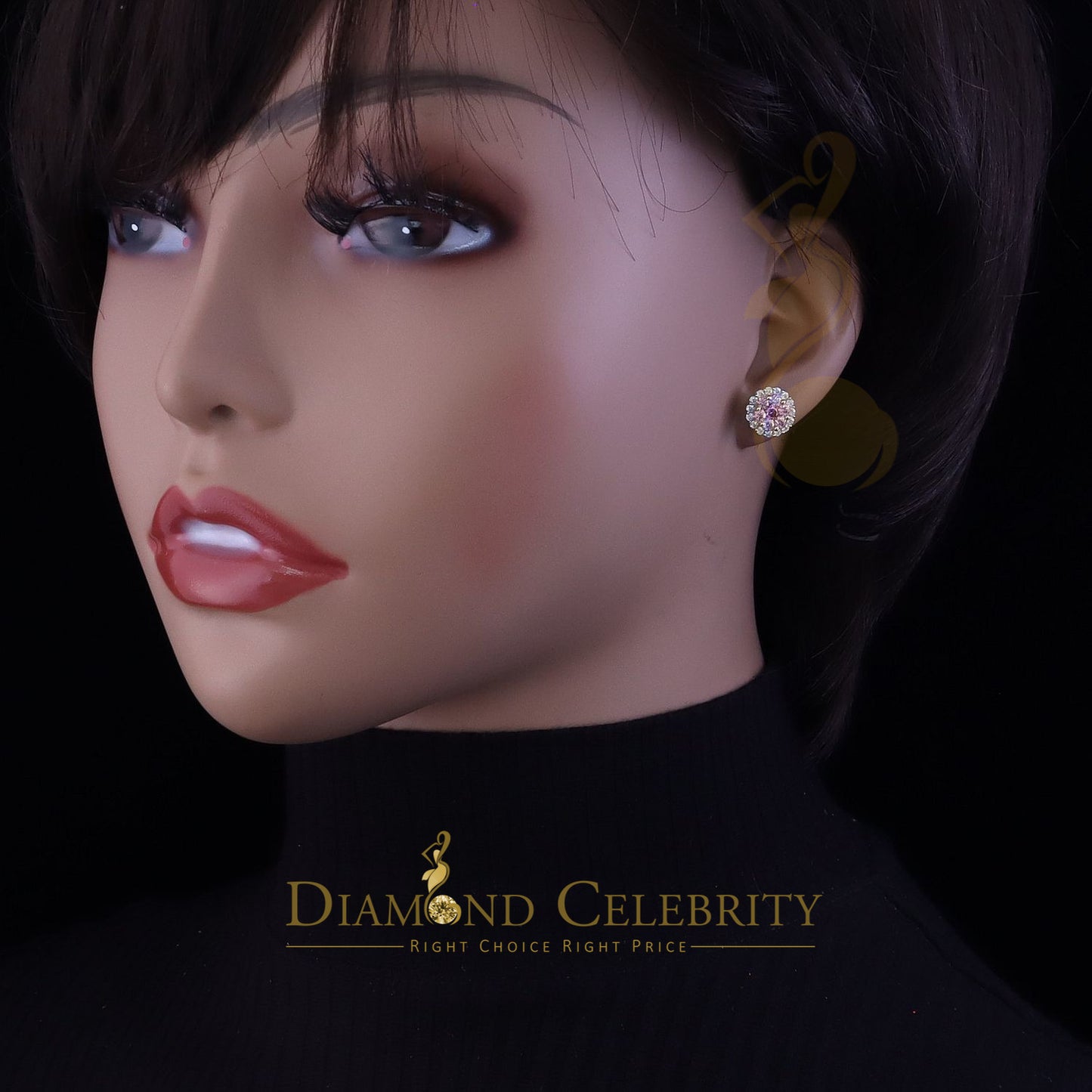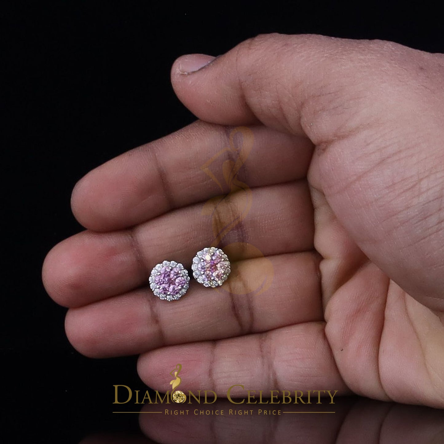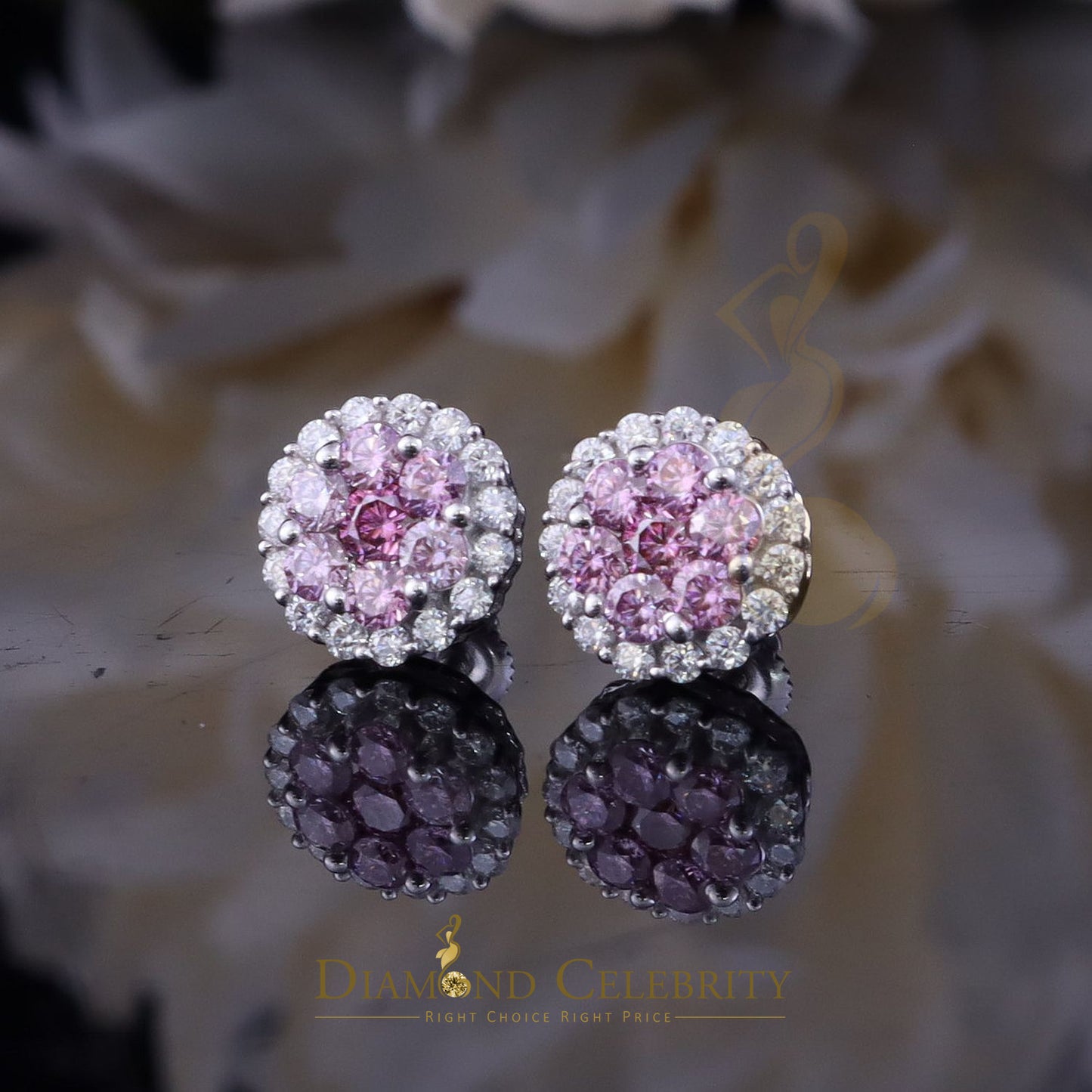 Diamondcelebritees Men's/Women's 925 Silver White 1.33ct VVS D Pink Moissanite Round Stud Earrings