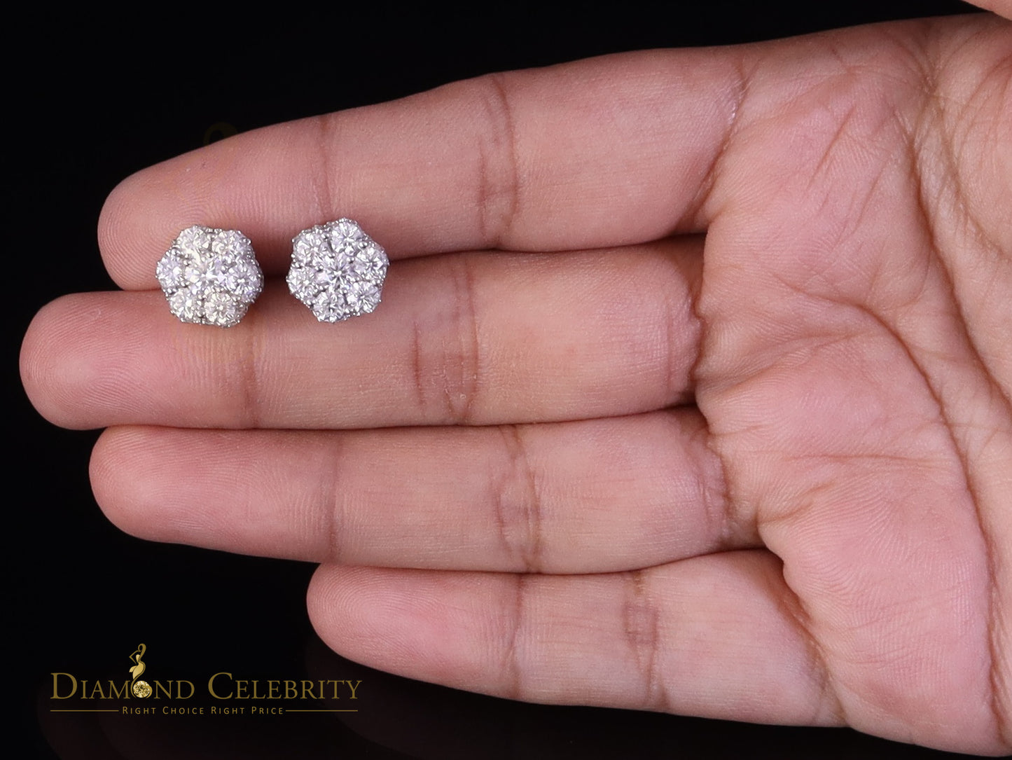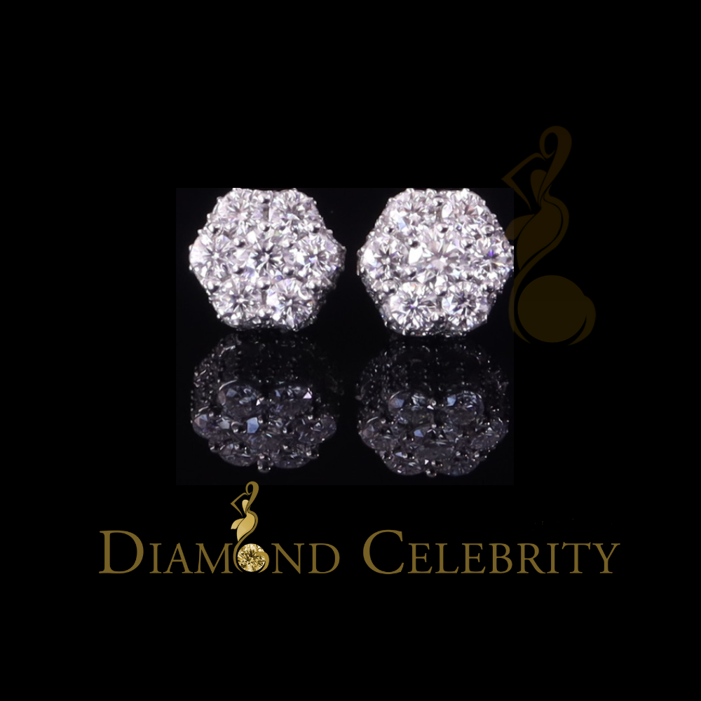 Diamondcelebritees Men's/Women's 925 Silver White 2.00ct VVS 'D' Moissanite Floral Stud Earrings