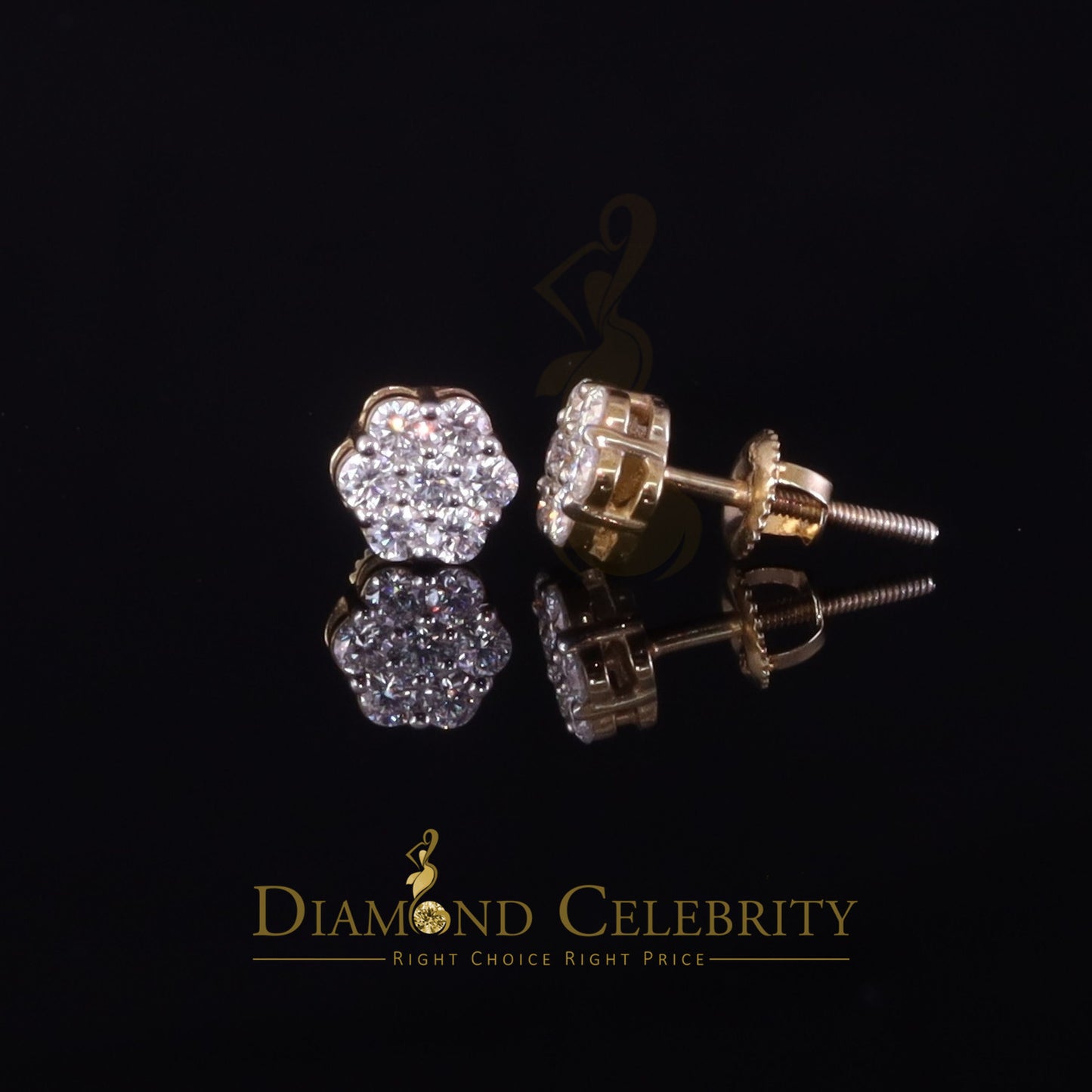 DiamondCelebritees Men's/Womens 925 Silver Yellow 0.50ct VVS 'D' Moissanite Floral Stud Earrings
