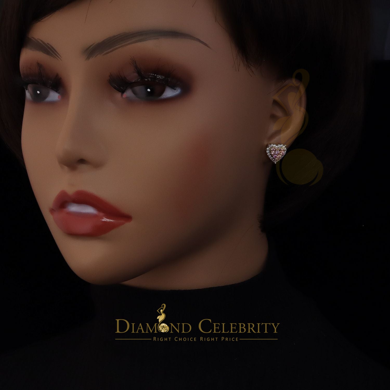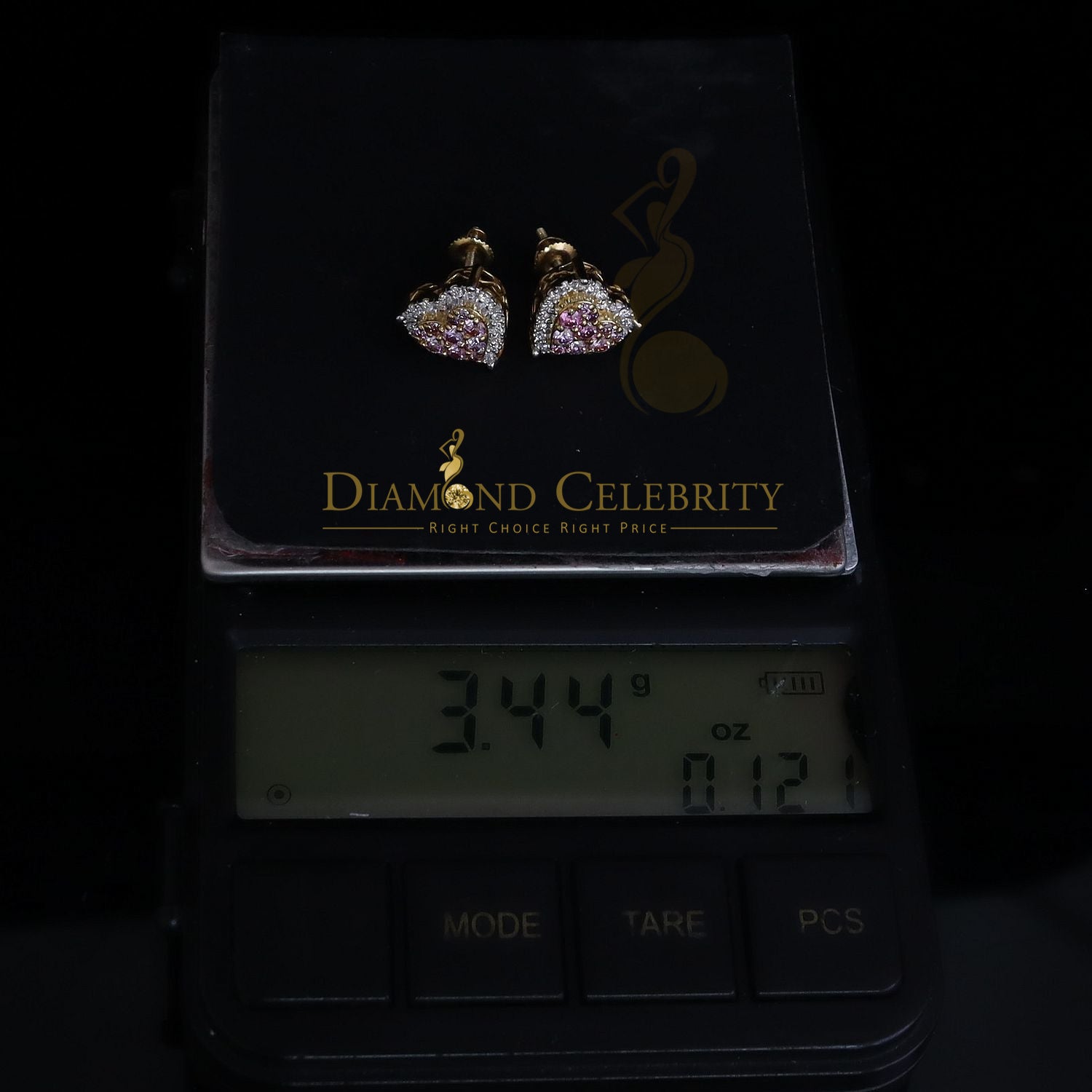 Diamondcelebritees Men's/Women's 925 Silver Yellow 1.00ct VVS 'D' Pink Moissanite 3D Heart Earrings