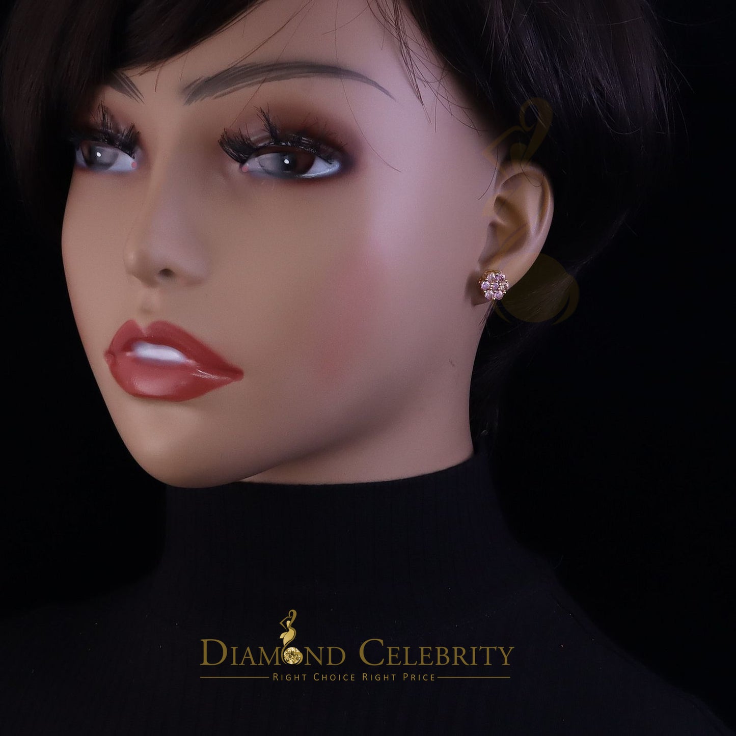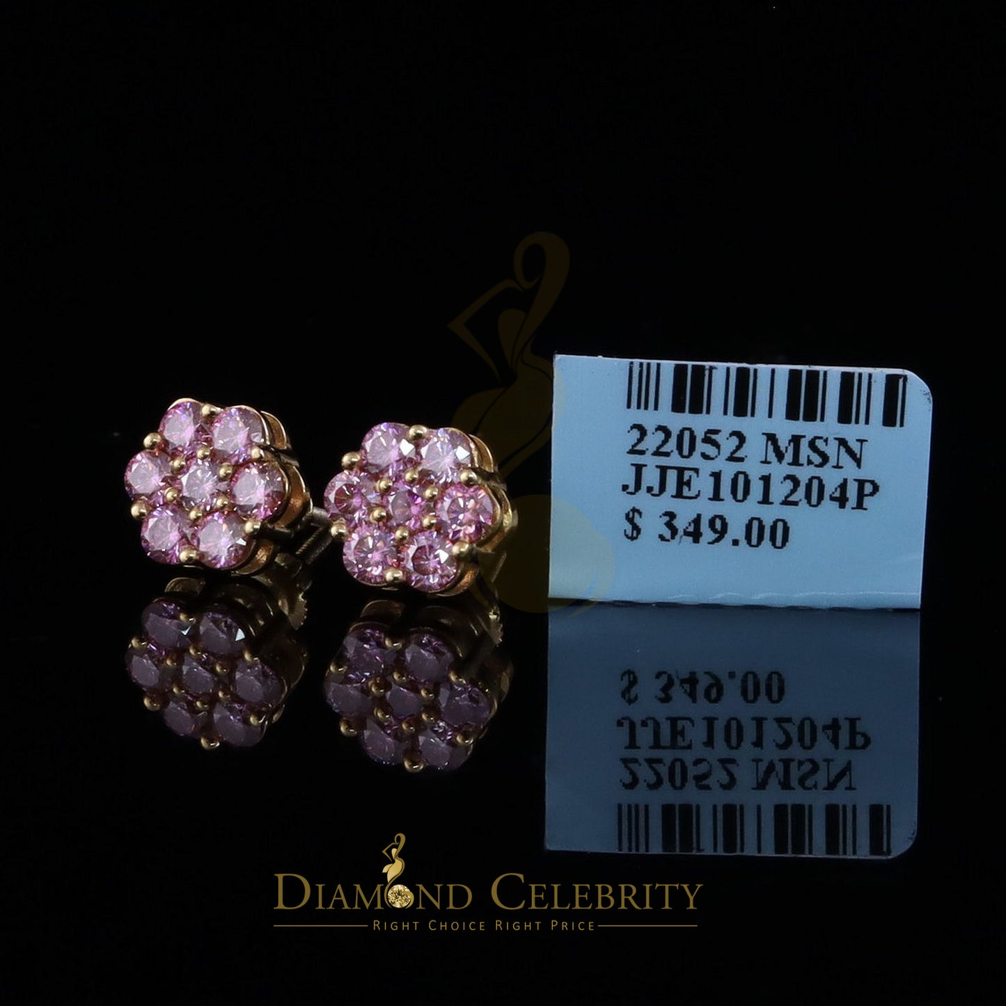 DiamondCelebritees Mens/Women's 925 Silver Yellow 1.66ct VVS D Pink Moissanite Floral Stud Earrings