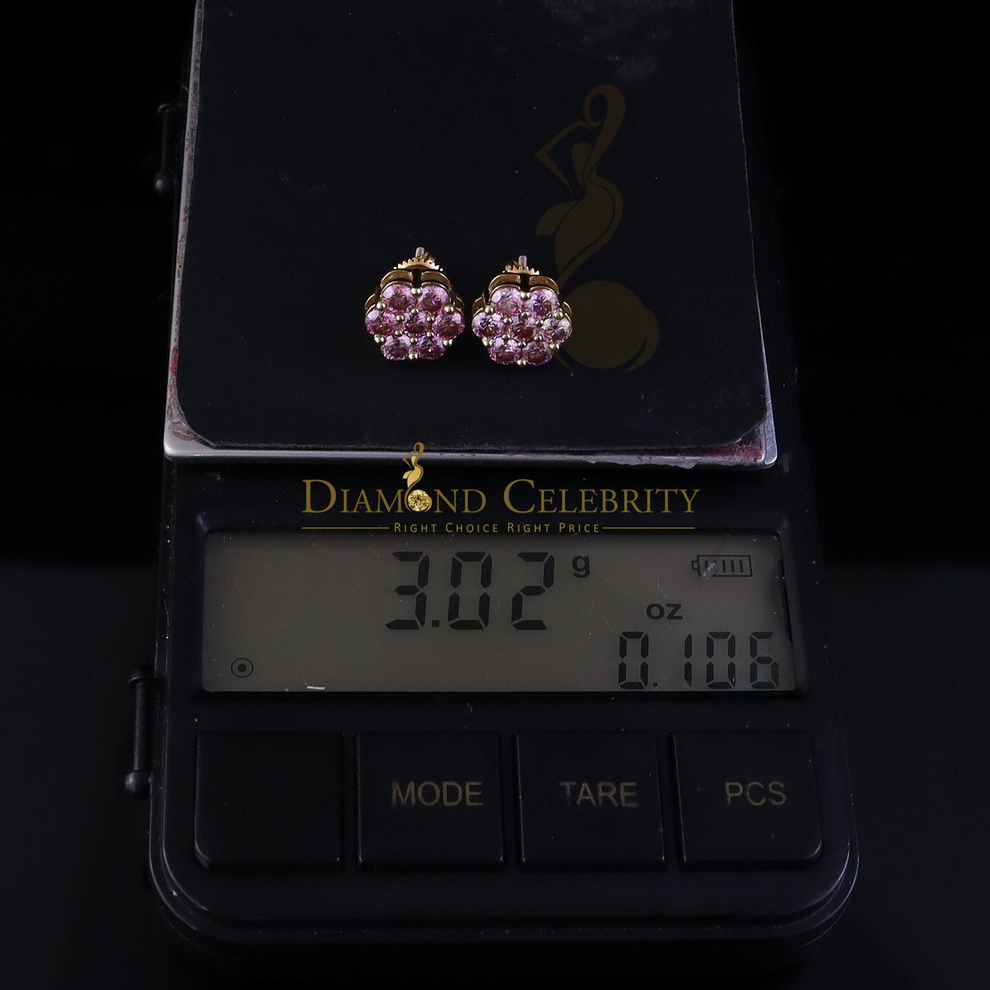 DiamondCelebritees Mens/Women's 925 Silver Yellow 2.25ct VVS D Pink Moissanite Floral Stud Earrings