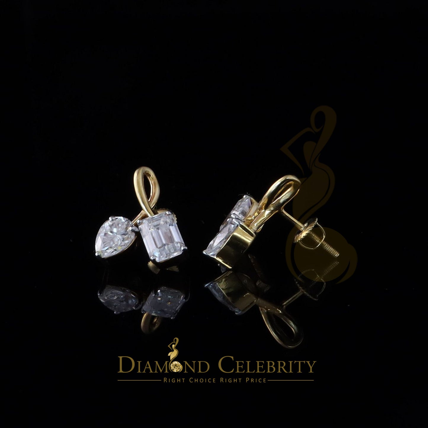 DiamondCelebritees Men's/Women's 925Silver Yellow3.50ct VVS D Moissanite Pear Emerald Stud Earrings