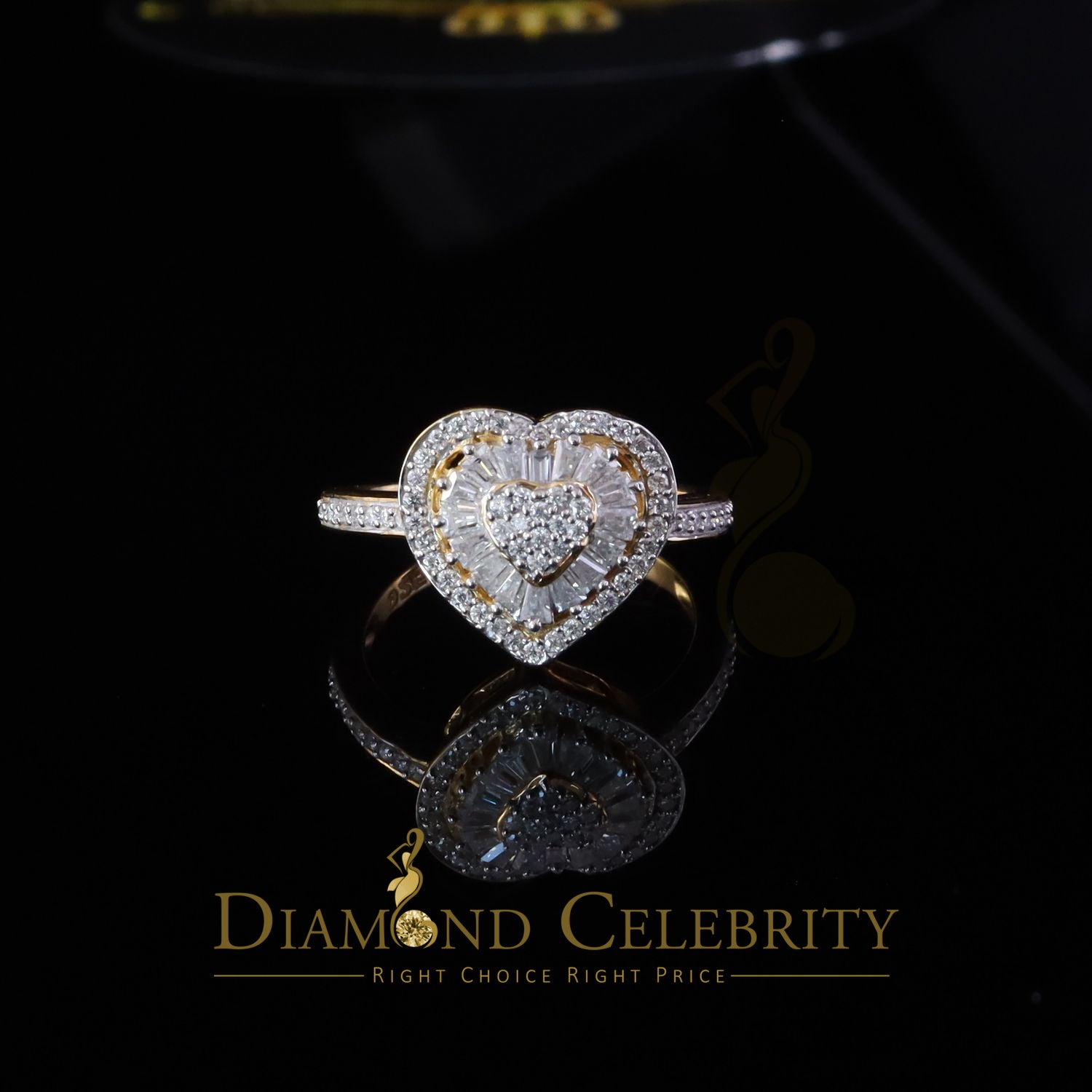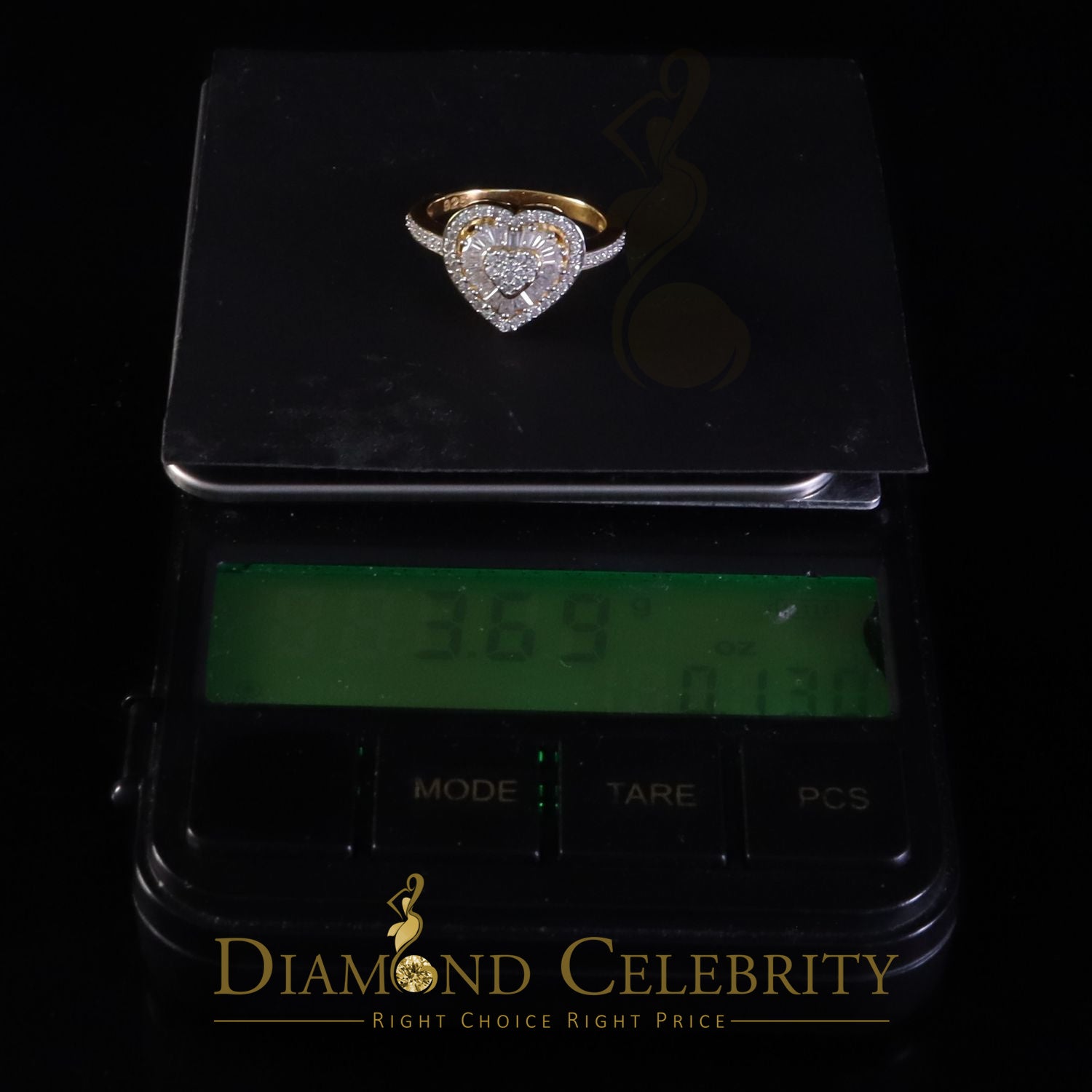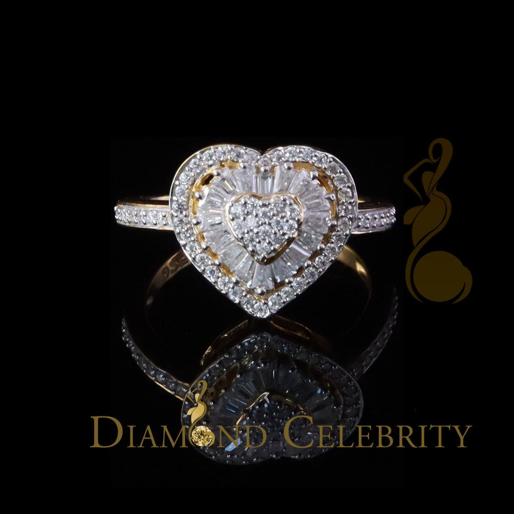 DiamondCelebritees Moissanite 925 Yellow Silver 1.00ct VVS 'D' Baguette Heart Rings Women's Size 7