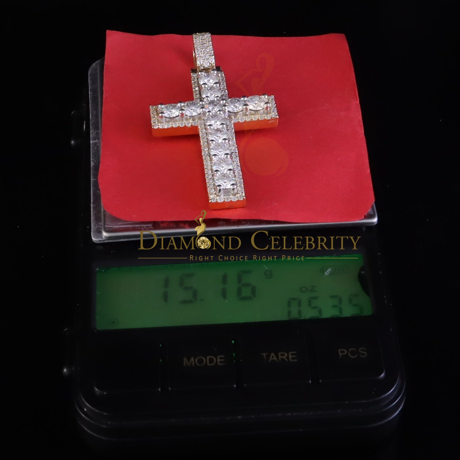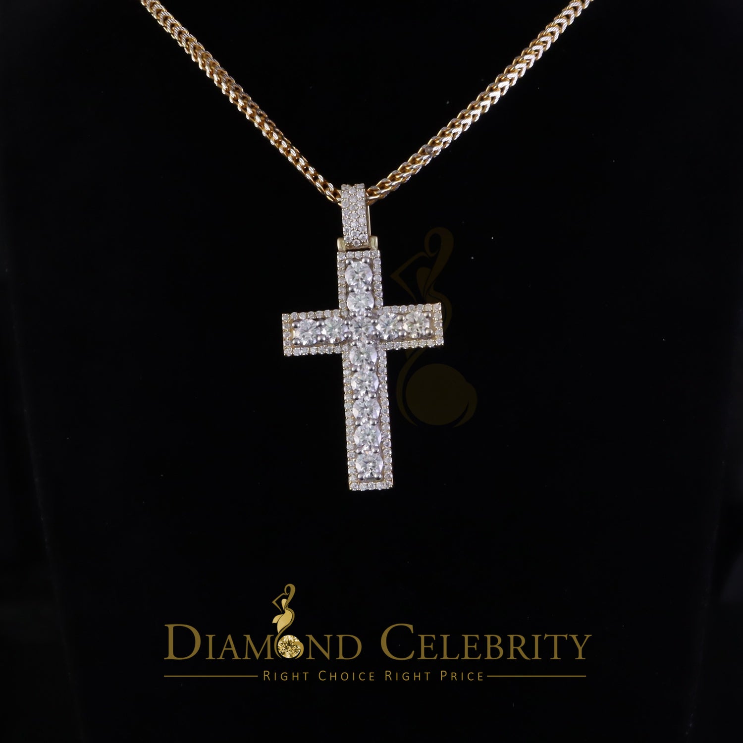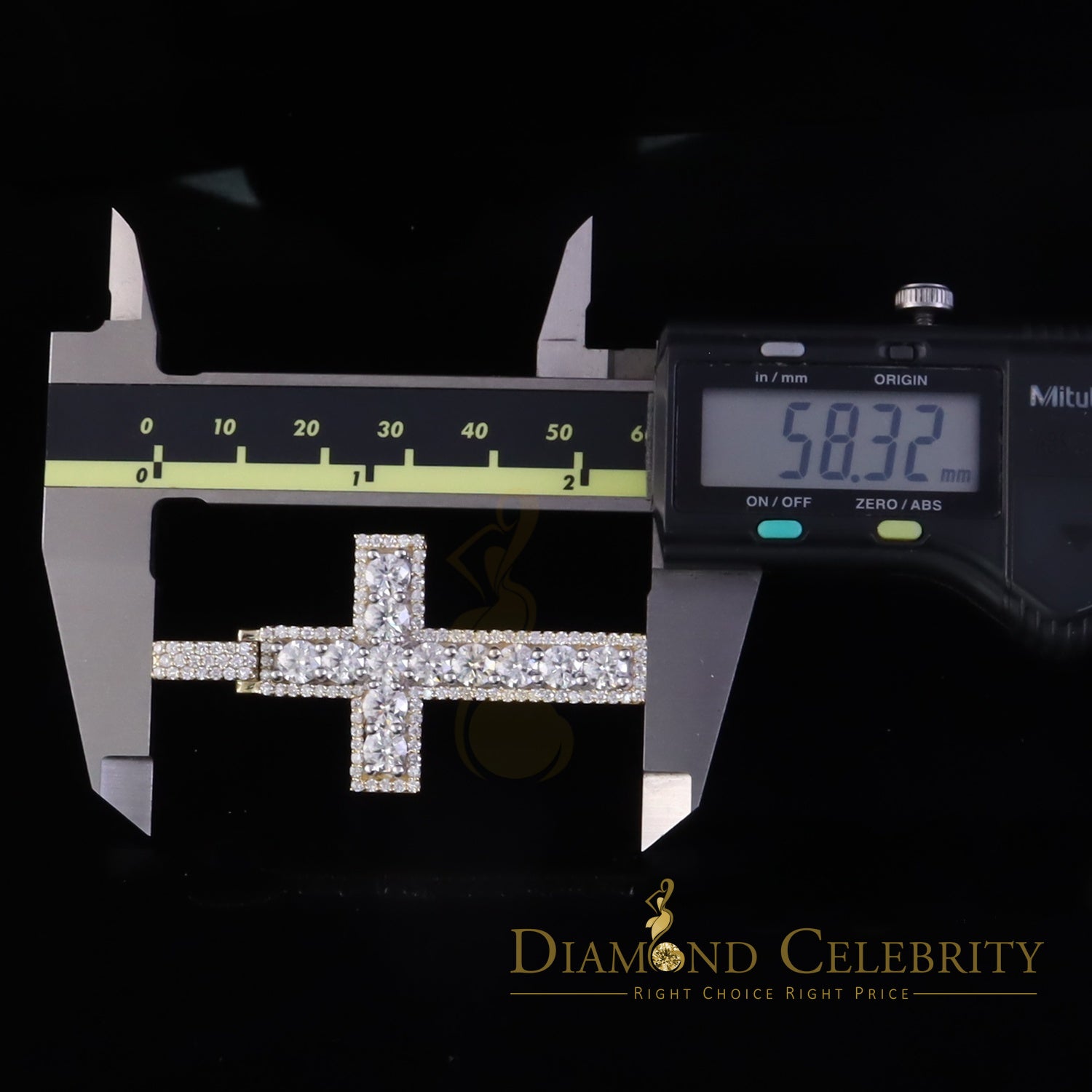 Diamondcelebritees Moissanite Men's & Women 7.50ct VVS D Sterling Yellow Silver Charm Cross Pendant