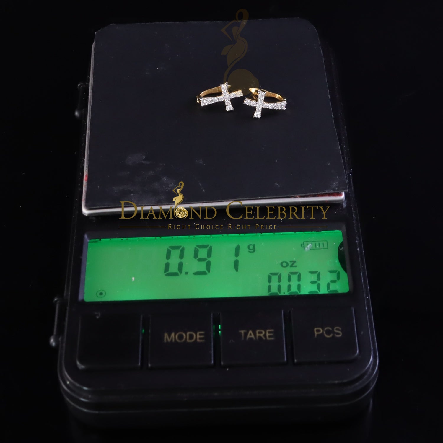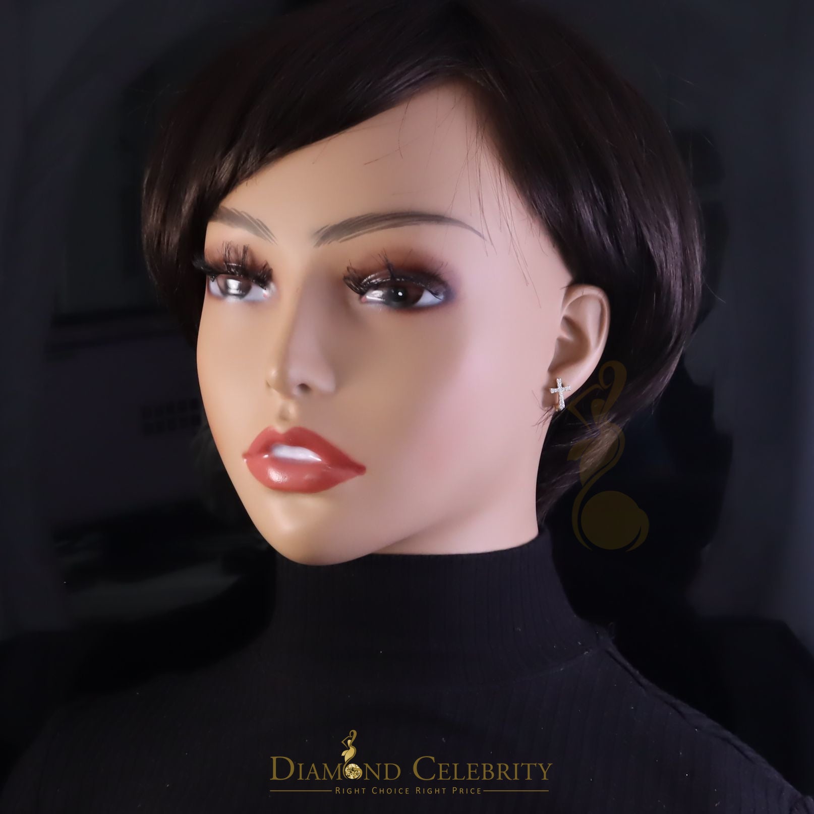 DiamondCelebritees Moissanite Stone 925 Silver Round Yellow Hip Hop Cross Stud Earring Men's/Womens