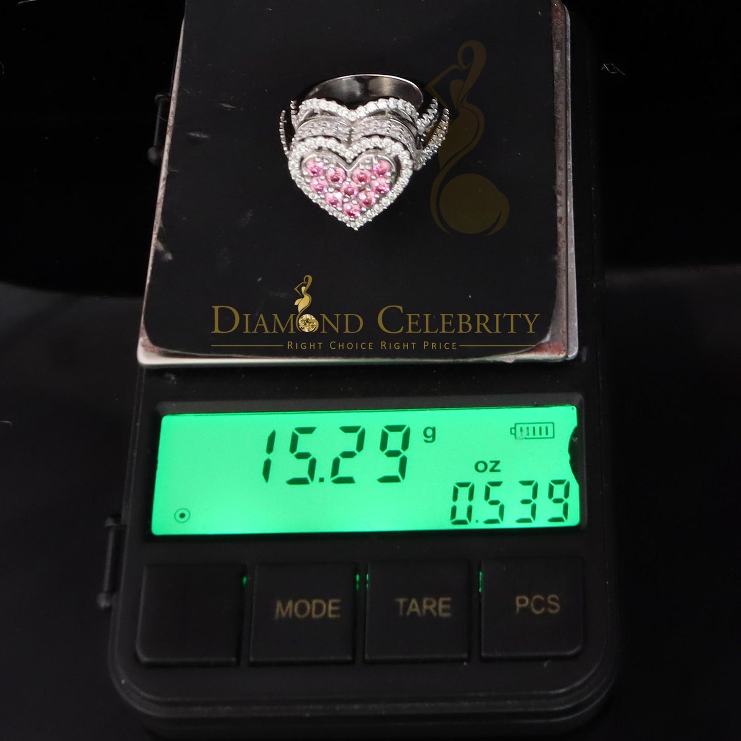 DiamondCelebritees New 5.00CT Women's Pink & White 3D Heart Moissanite Ring VVS 'D' 925 Silver White Sz7