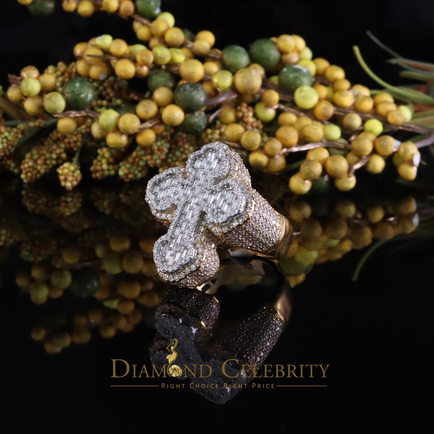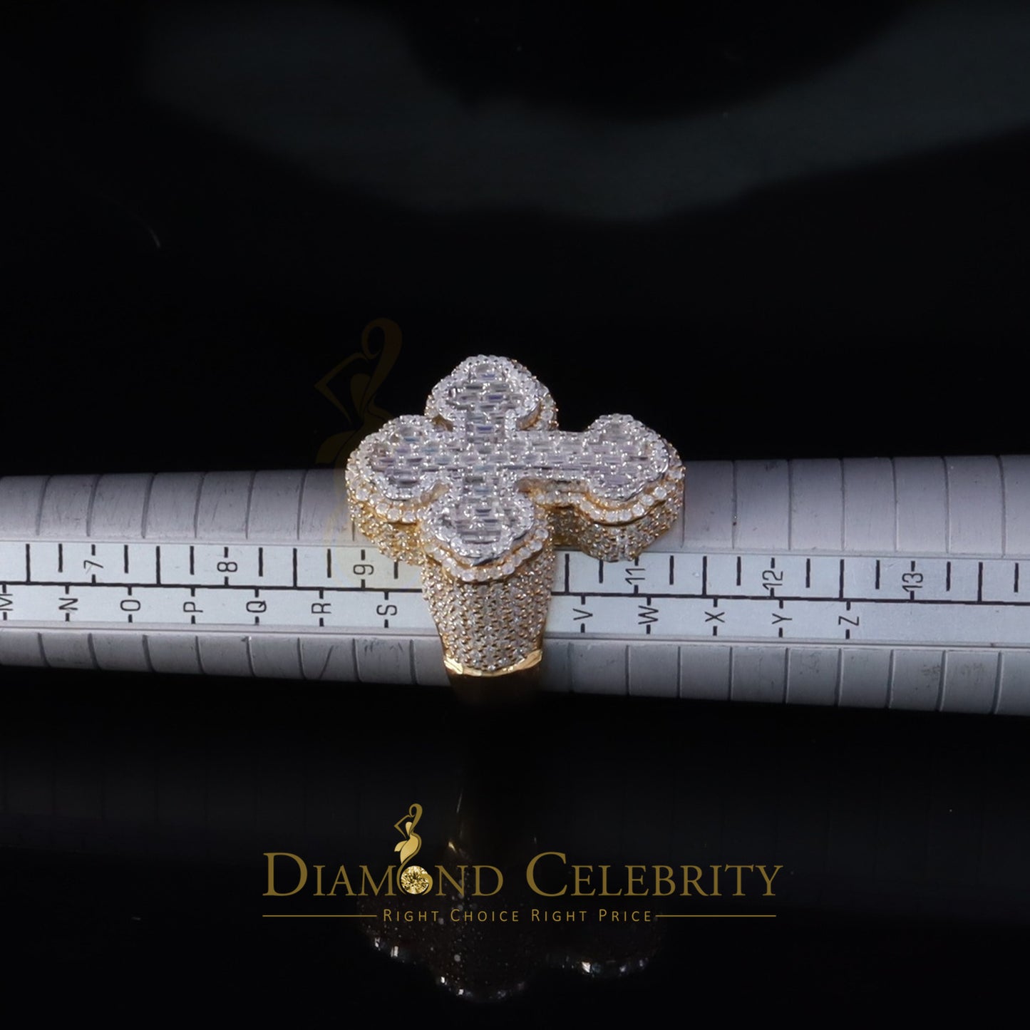 DiamondCelebritees New 925 Sterling Silver 6.00ct VVS D Moissanite Rings Size 10 Yellow Cross Men's
