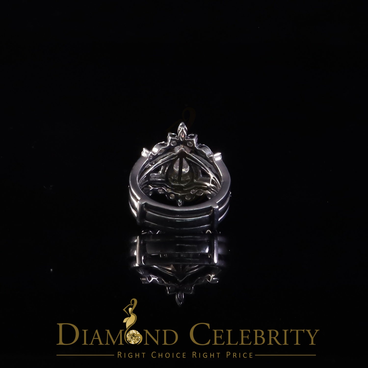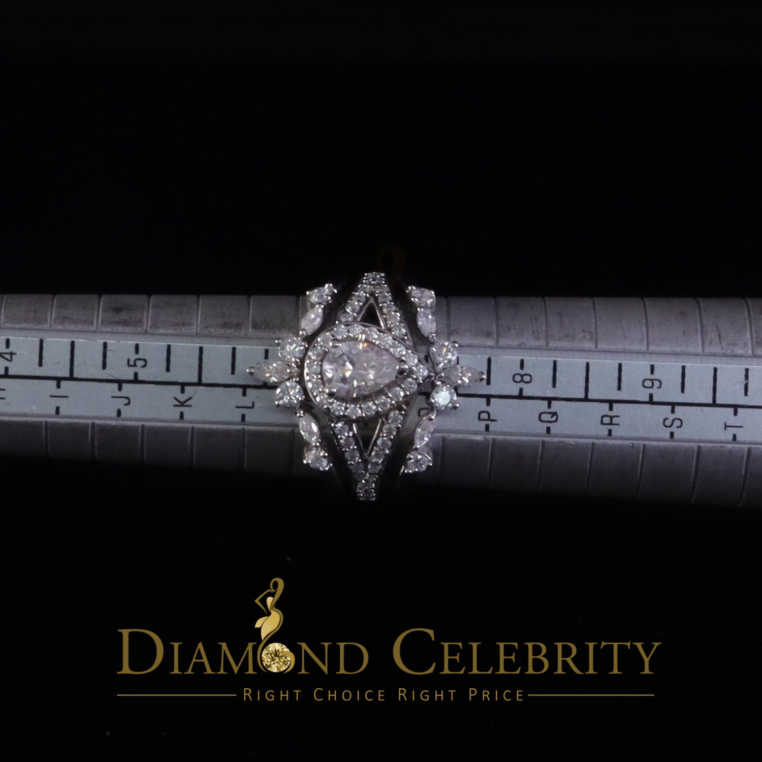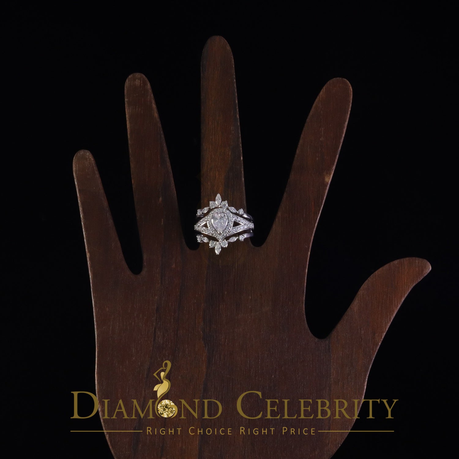 DiamondCelebritees Pear Shape Moissanite Women's 925 Silver White 1.66ct VVS 'D' Ring Guard Size 7