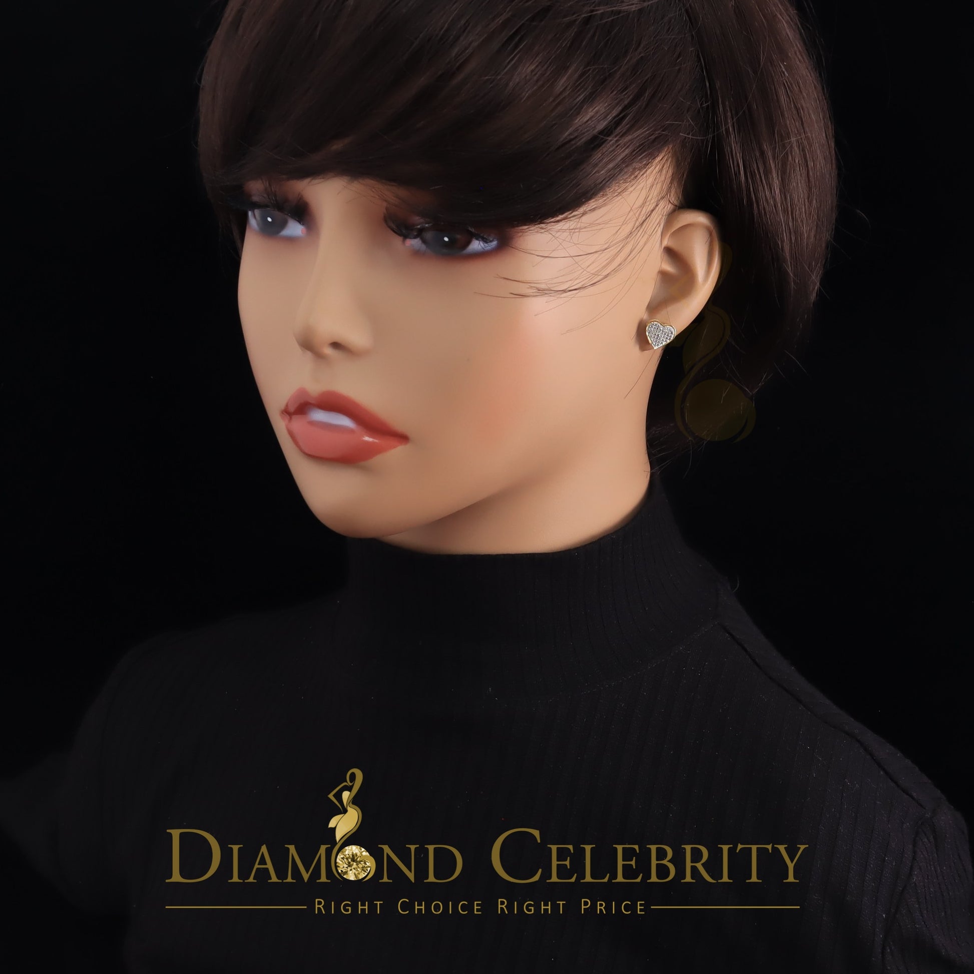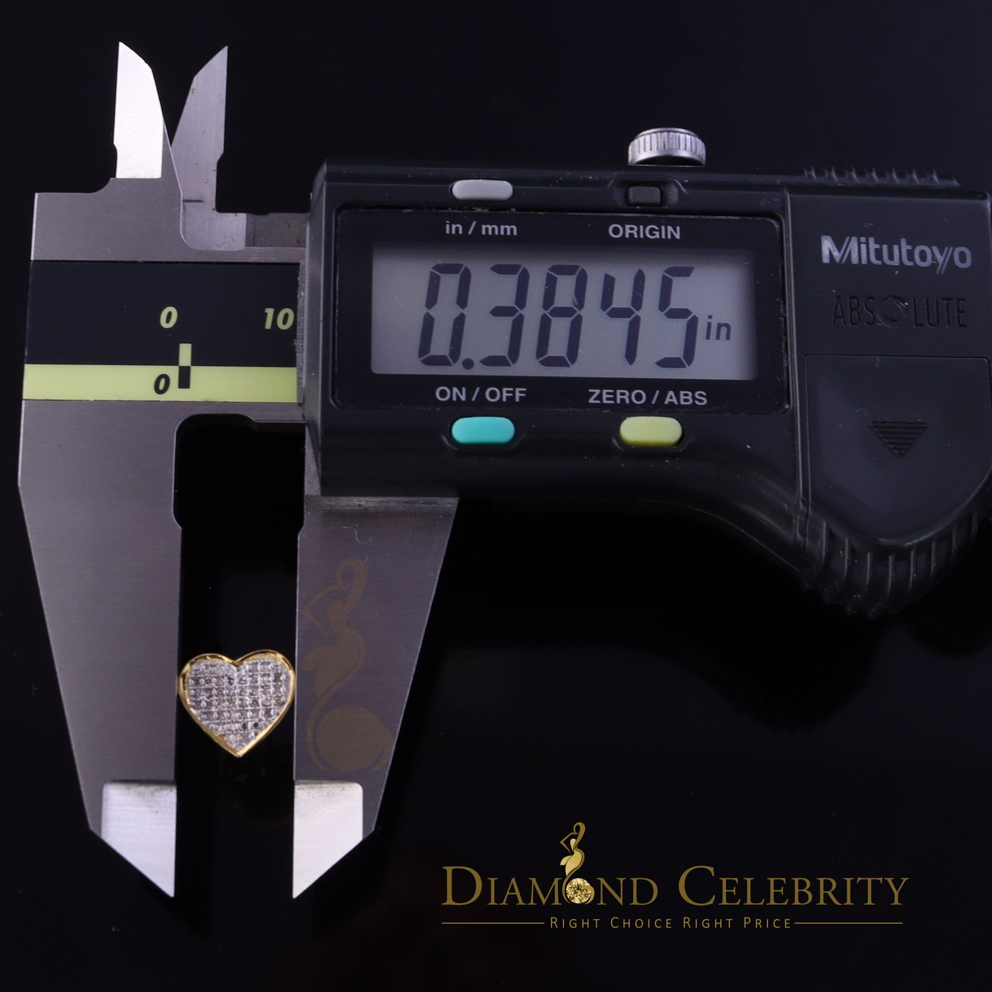 DiamondCelebritees Real 10K Yellow Gold Heart Round Stud 8.58mm Earrings with Real 0.25CT Diamonds
