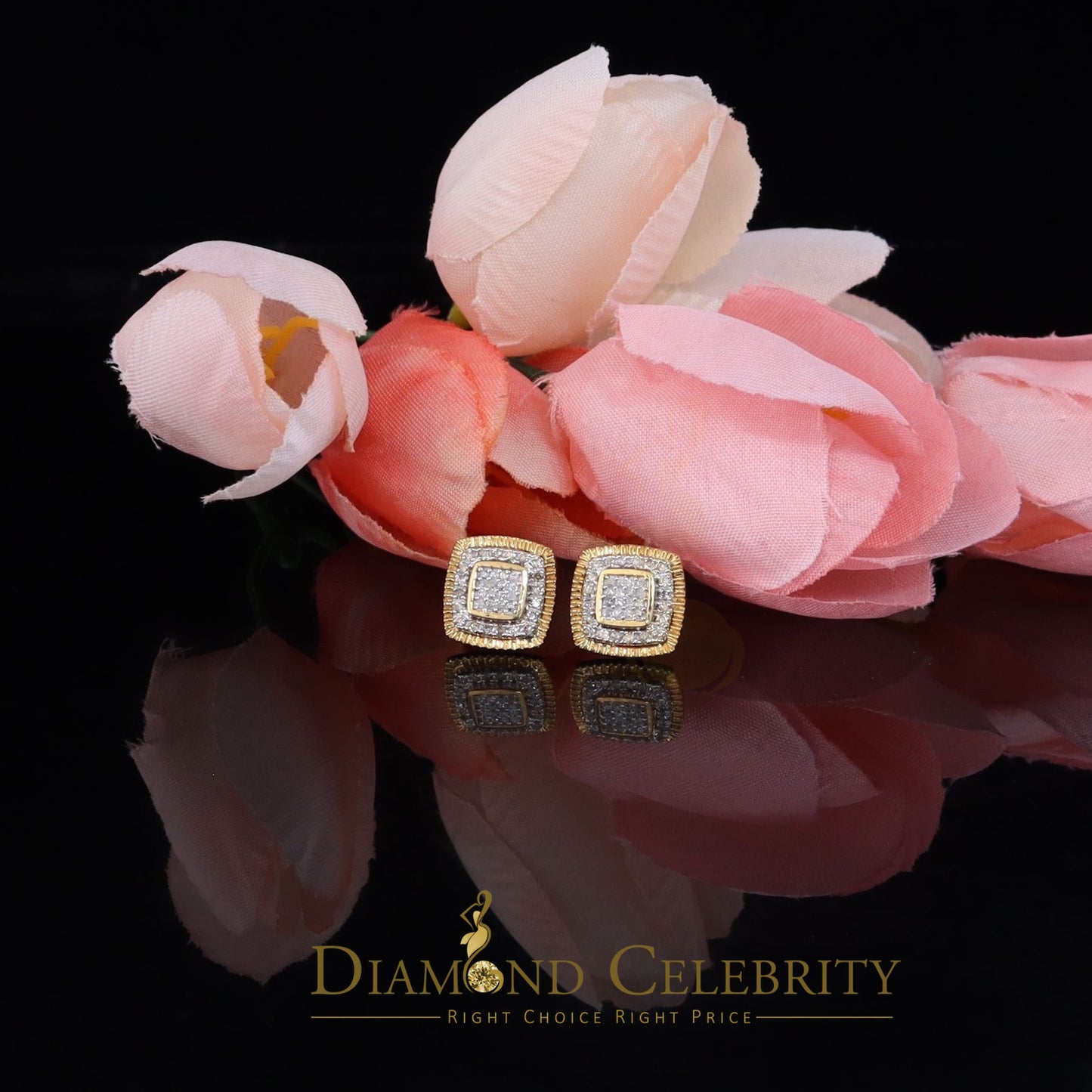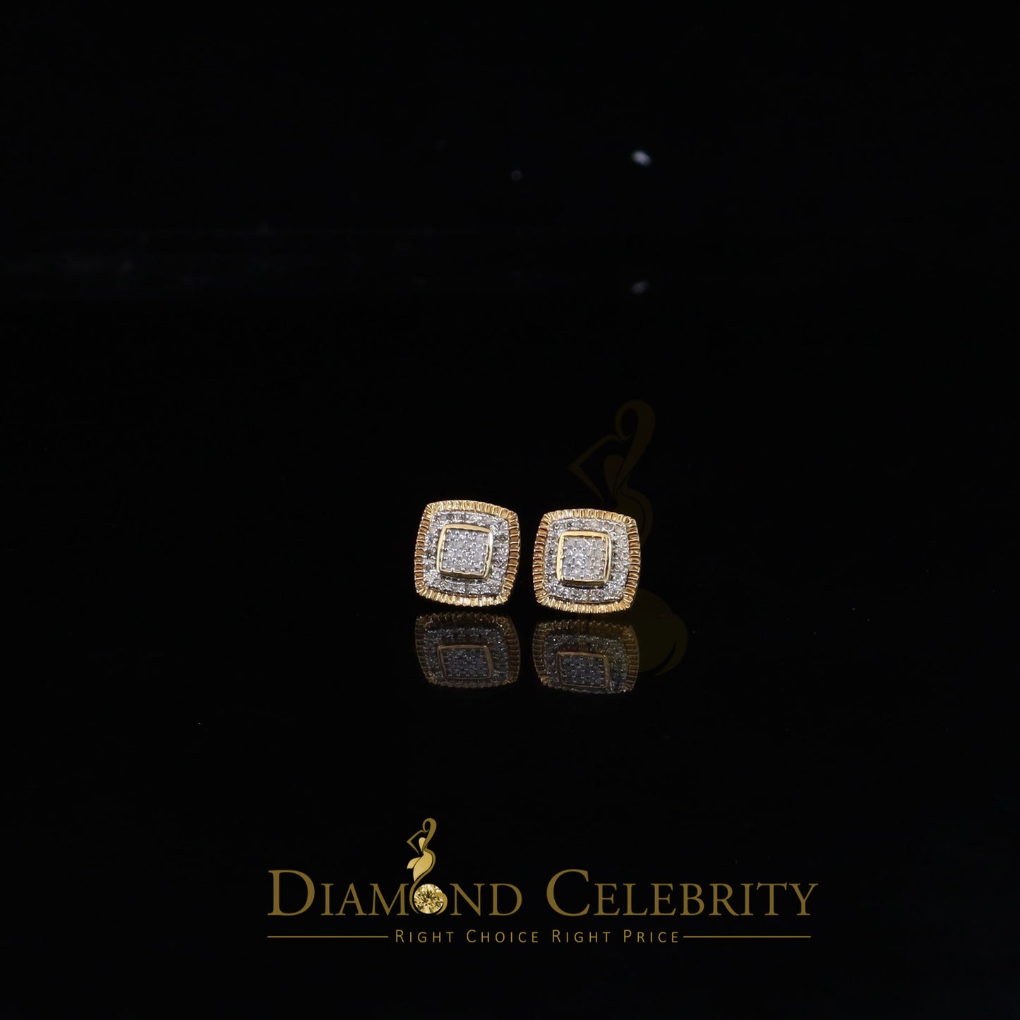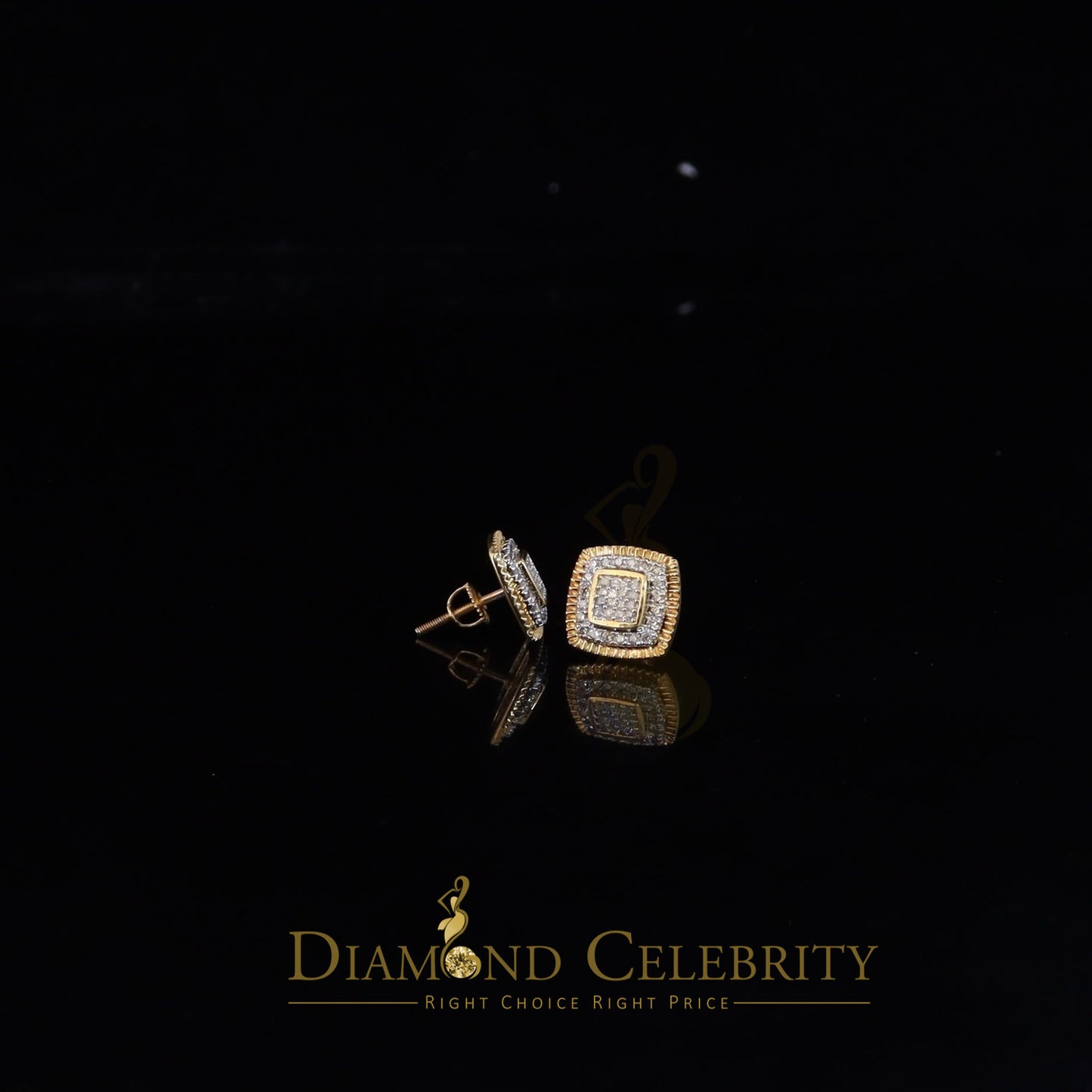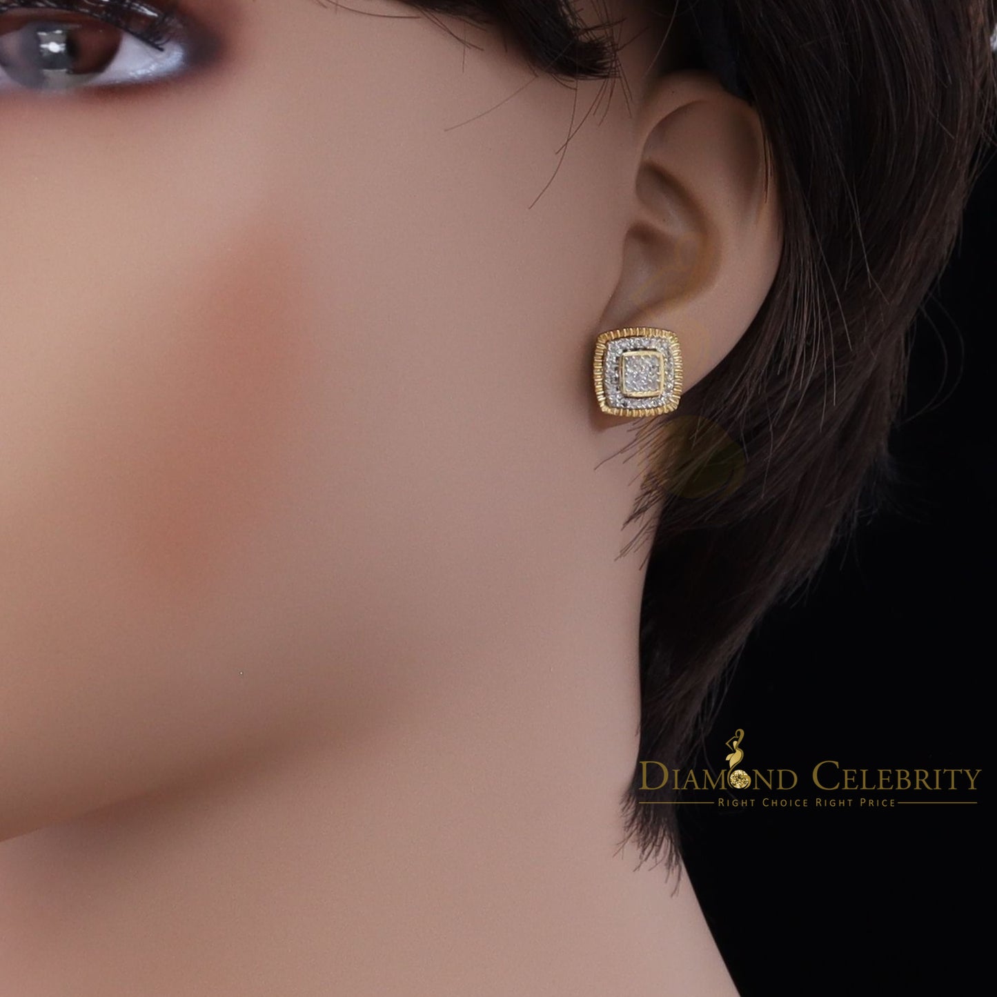 DiamondCelebritees Real 10K Yellow Gold Real Diamond 0.50 CT Men and Ladies Square Stud Earring