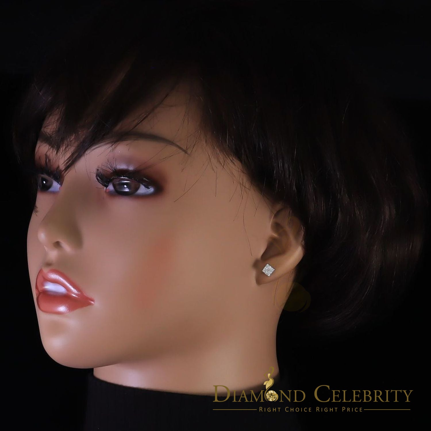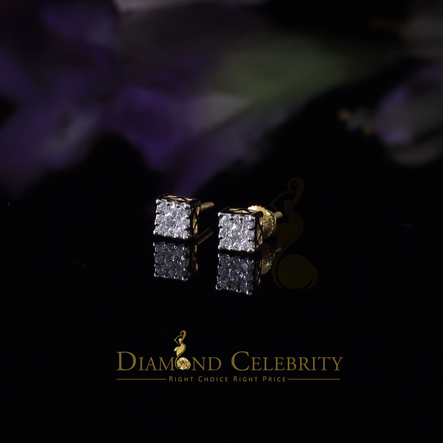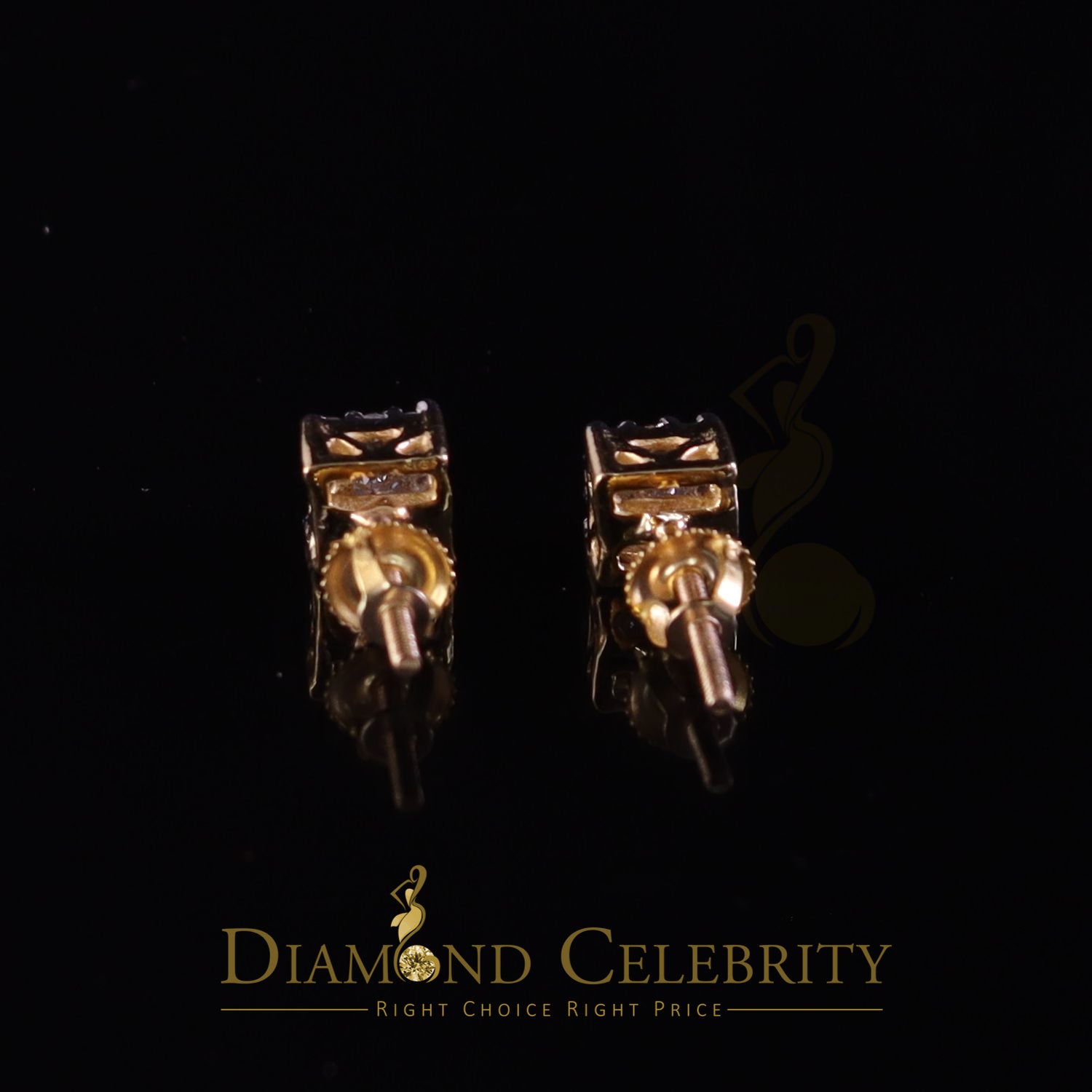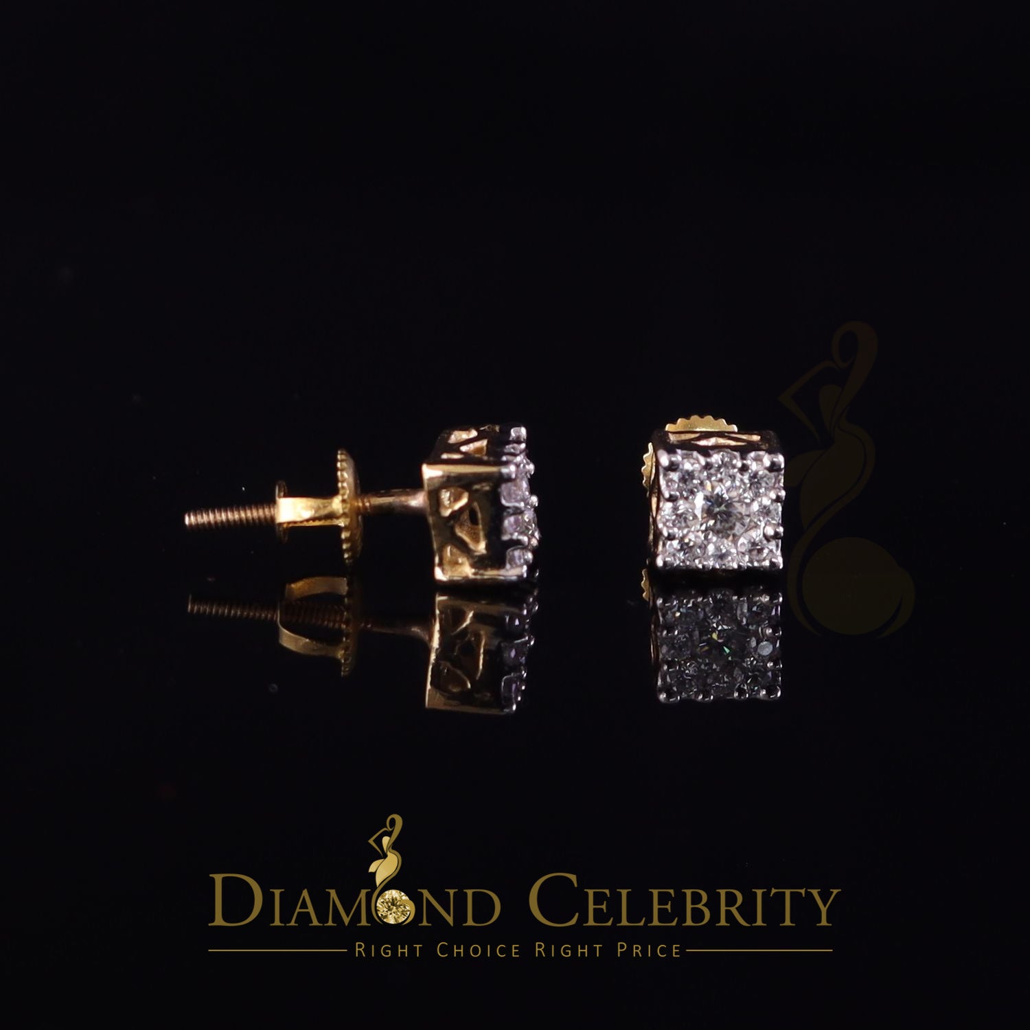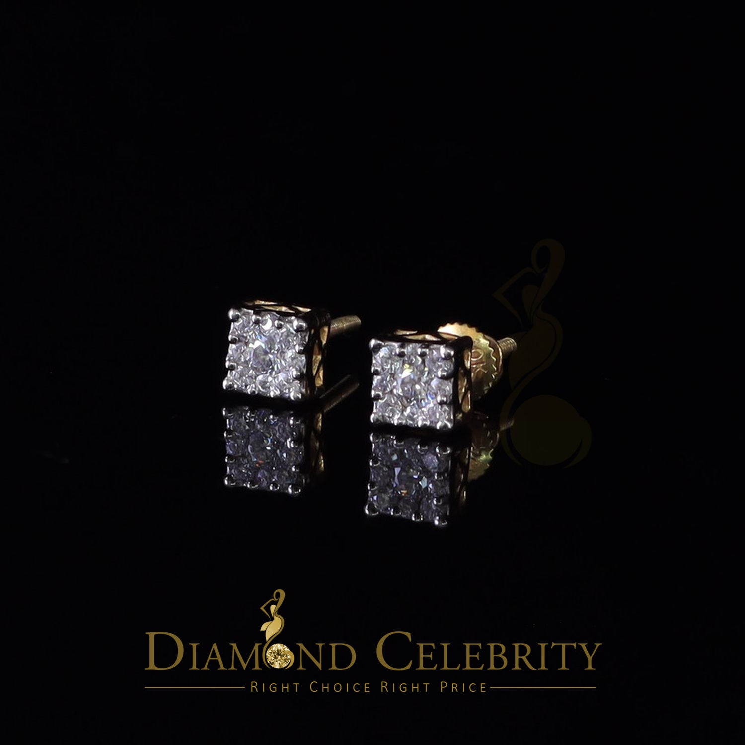 DiamondCelebritees Real Moissanite Stud Square Earrings 10k Real Yellow Gold 0.33ct VVS 'D' Color