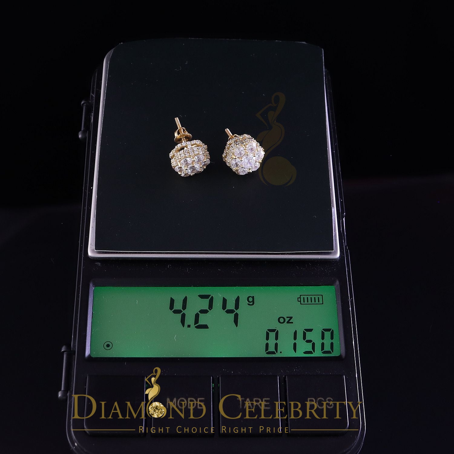 DiamondCelebritees Round Style Earring 2.00ct Cubic Zirconia 925 Sterling Silver Yellow for He/She