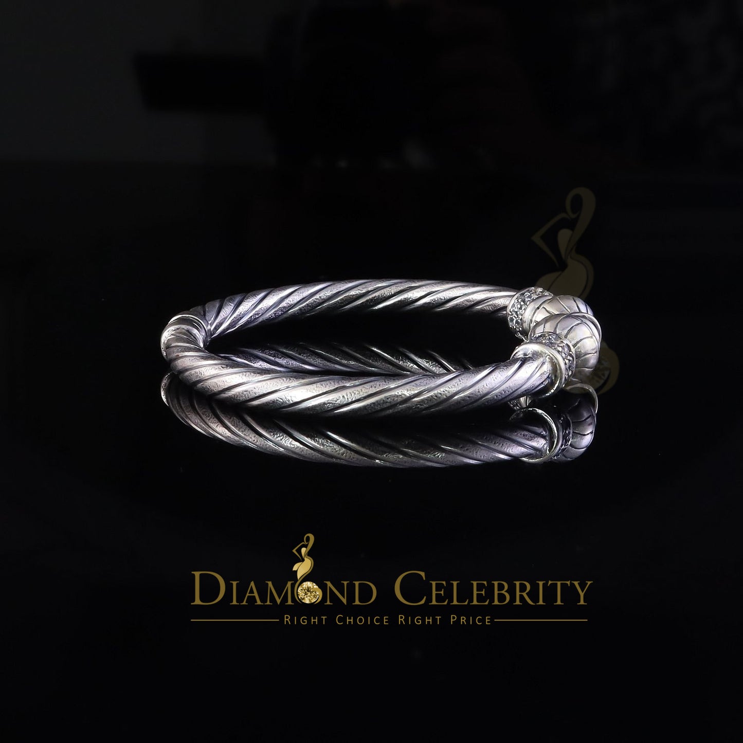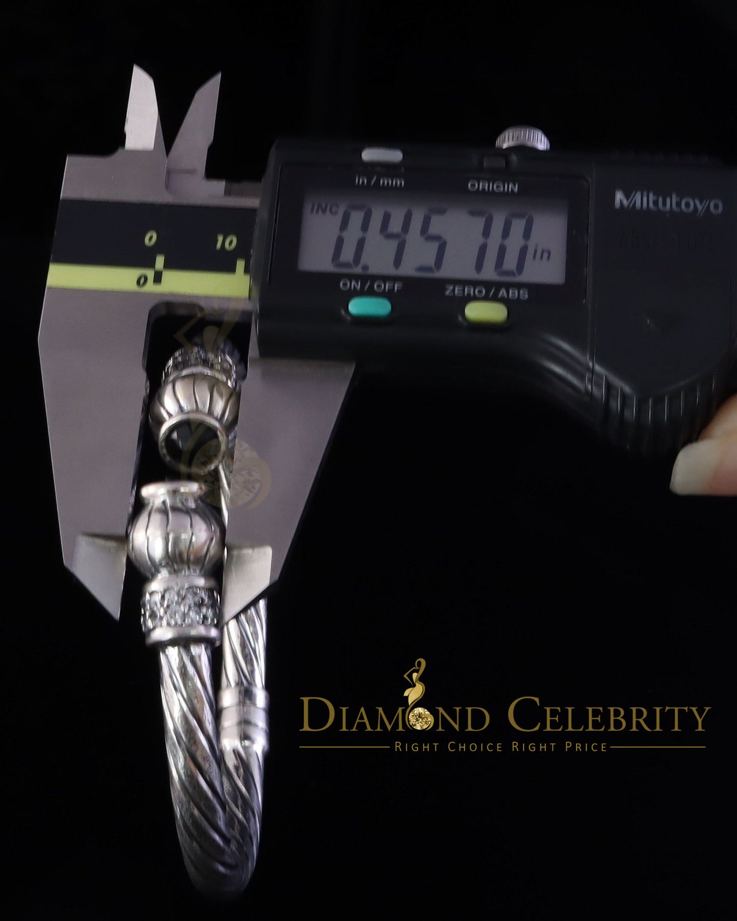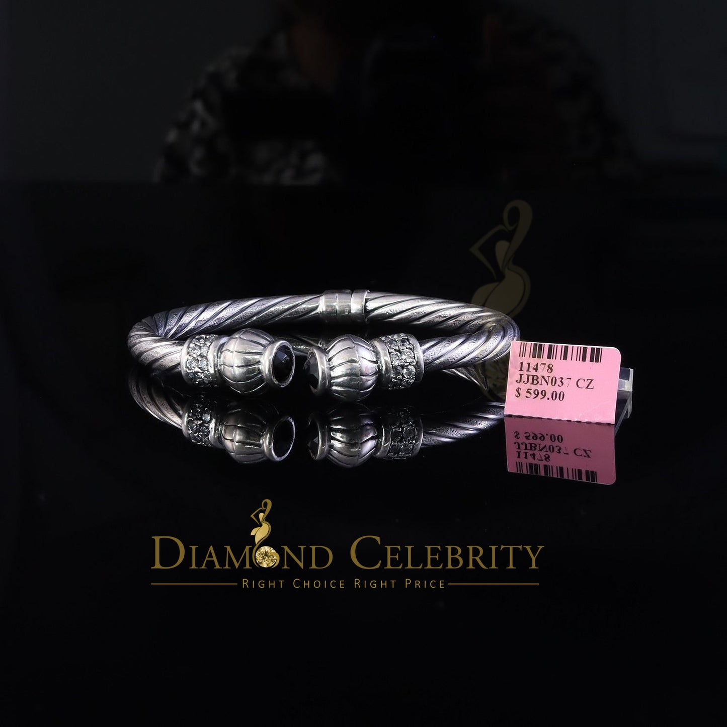 DiamondCelebritees Round White Sterling Silver Cubic Zirconia Bangle for Men/Ladies's 7 Inch