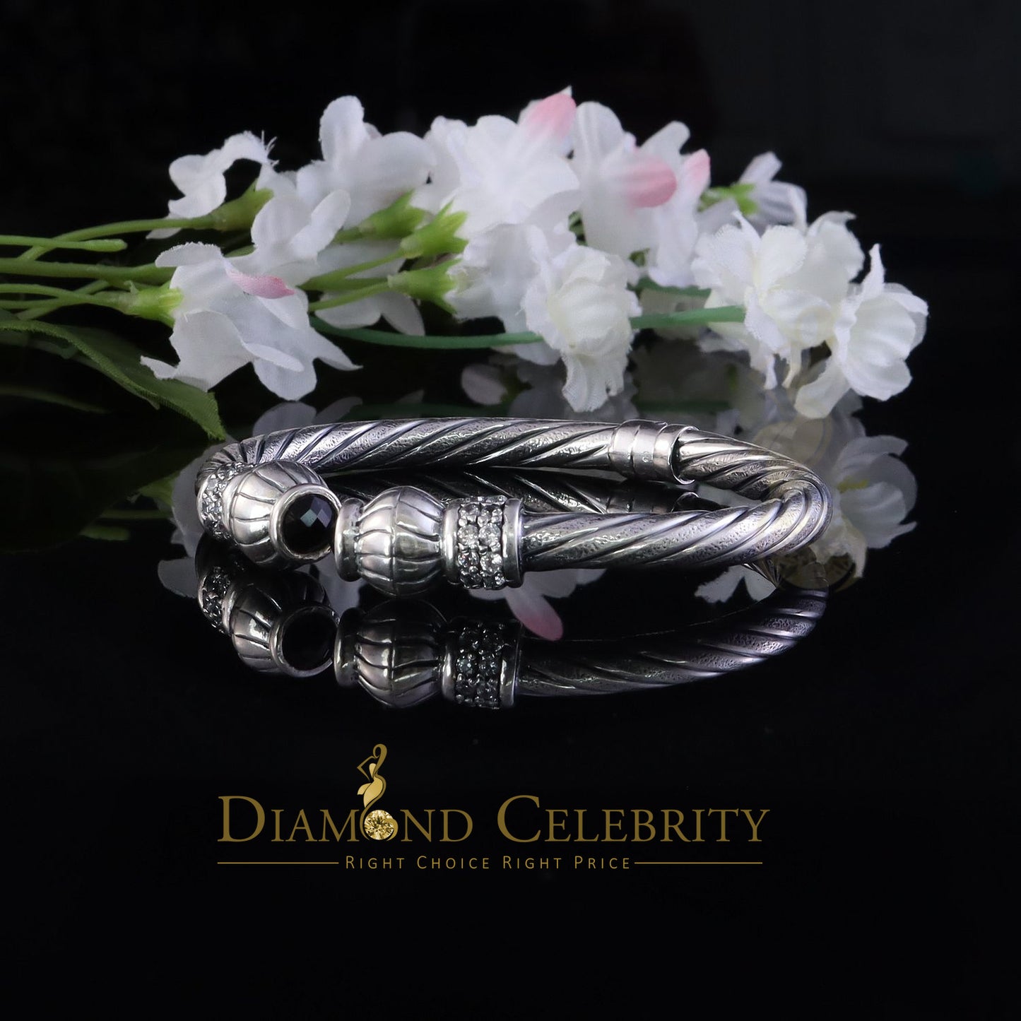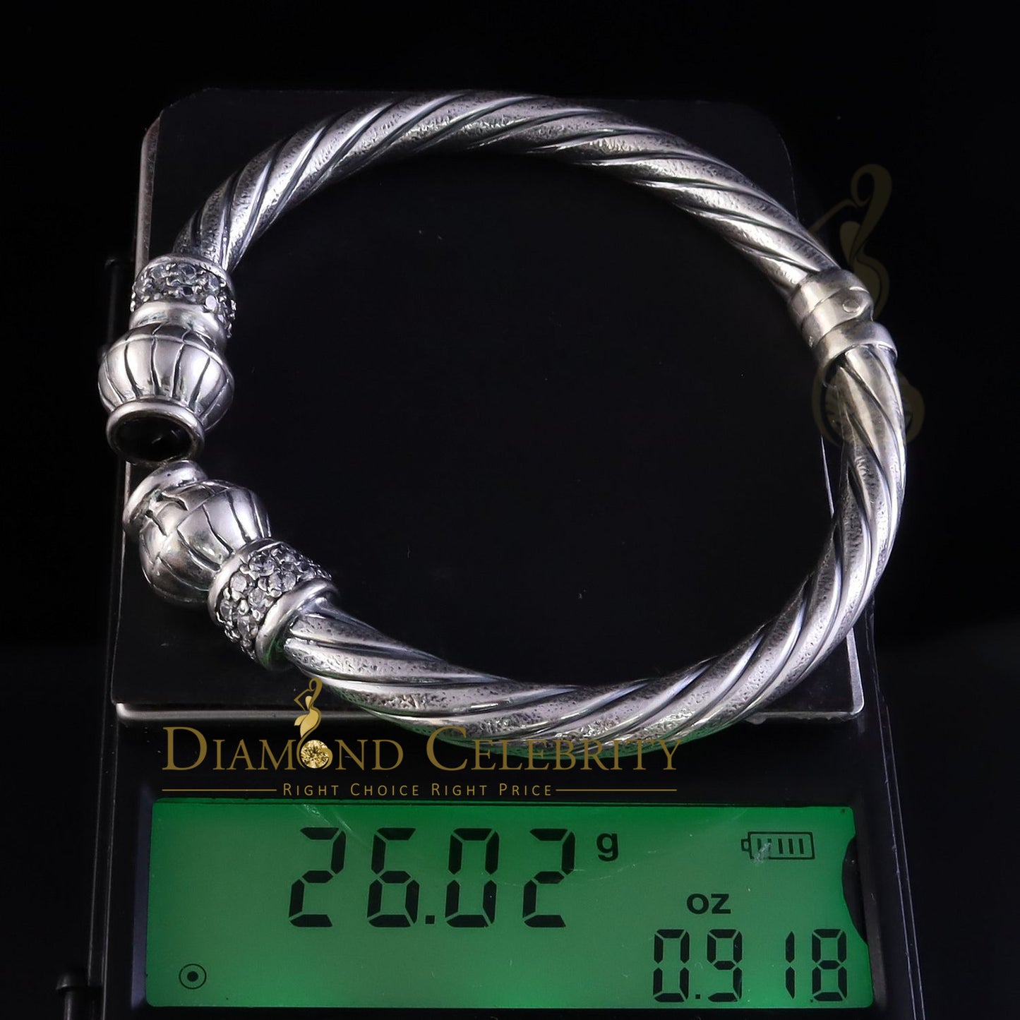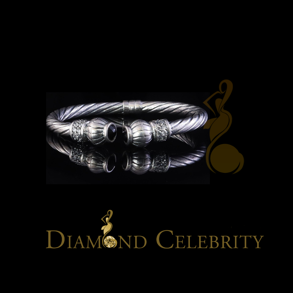 DiamondCelebritees Round White Sterling Silver Cubic Zirconia Bangle for Men/Ladies's 7 Inch