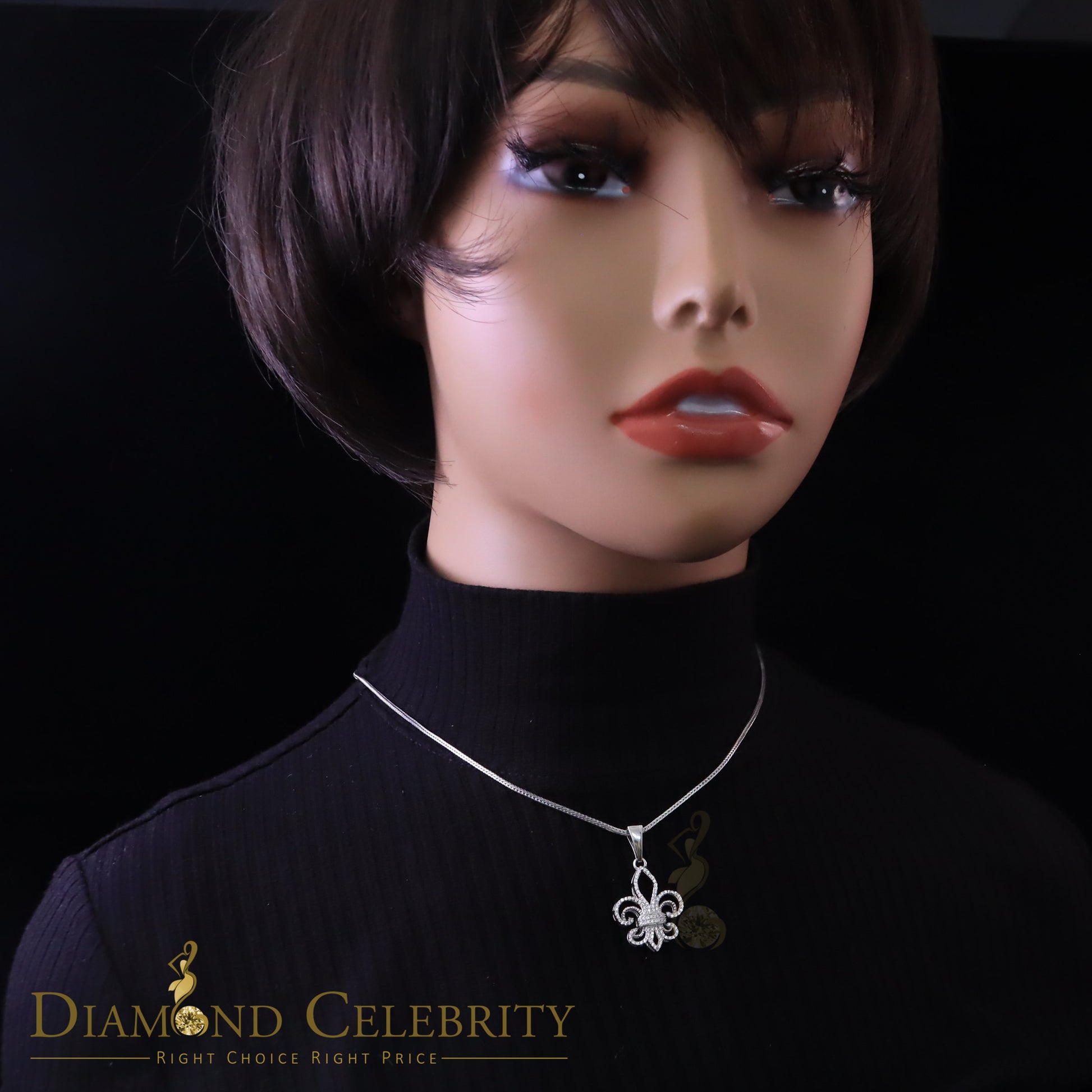 DiamondCelebritees Sterling 925 Silver Fleur de Lis White Shape Pendant with 0.93ct Cubic Zirconia