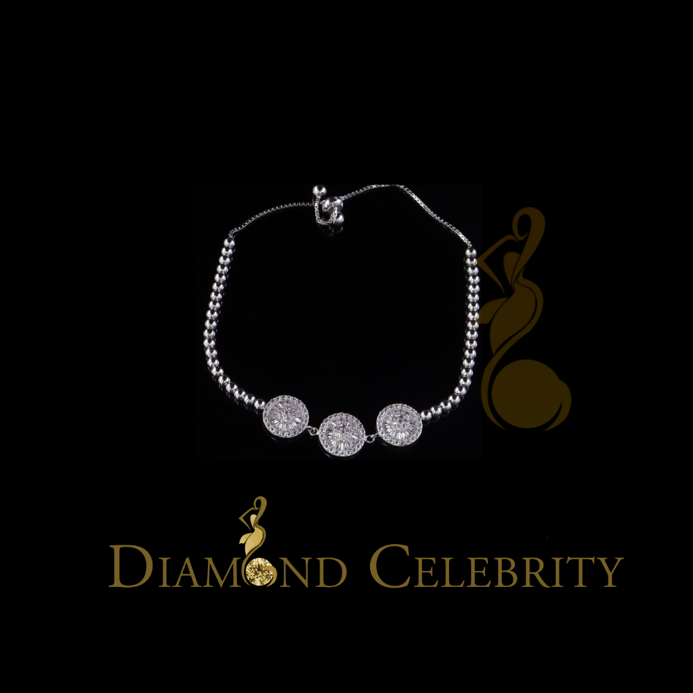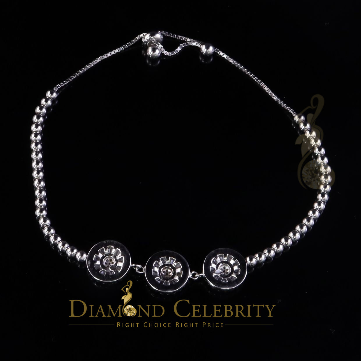 Diamondcelebritees Sterling Silver Fancy Round White Bracelet Cubic Zirconia Adjustable Size 7 Inch