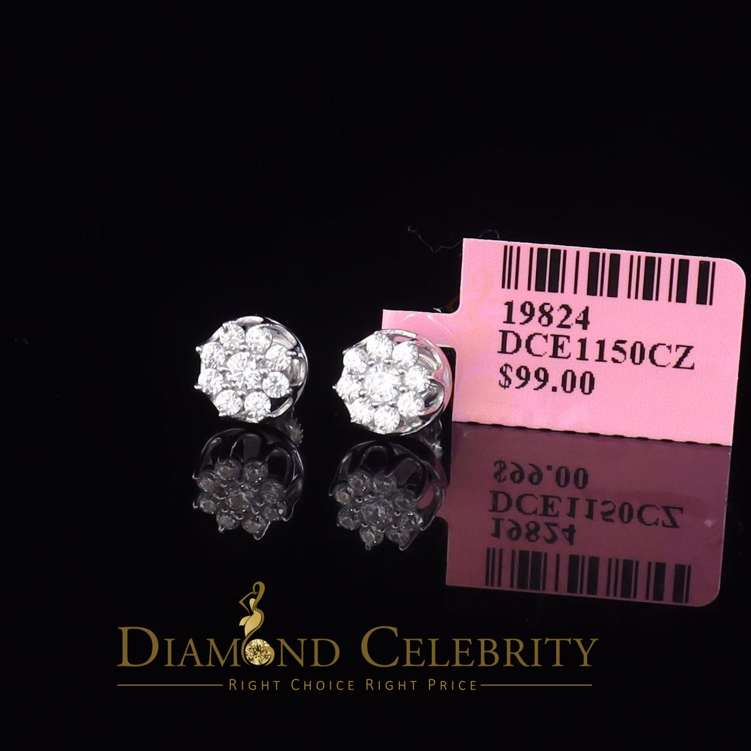 DiamondCelebritees White 925 Silver Cubic 0.14ct Zirconia Women's & Men's Hip Hop Flower Earrings