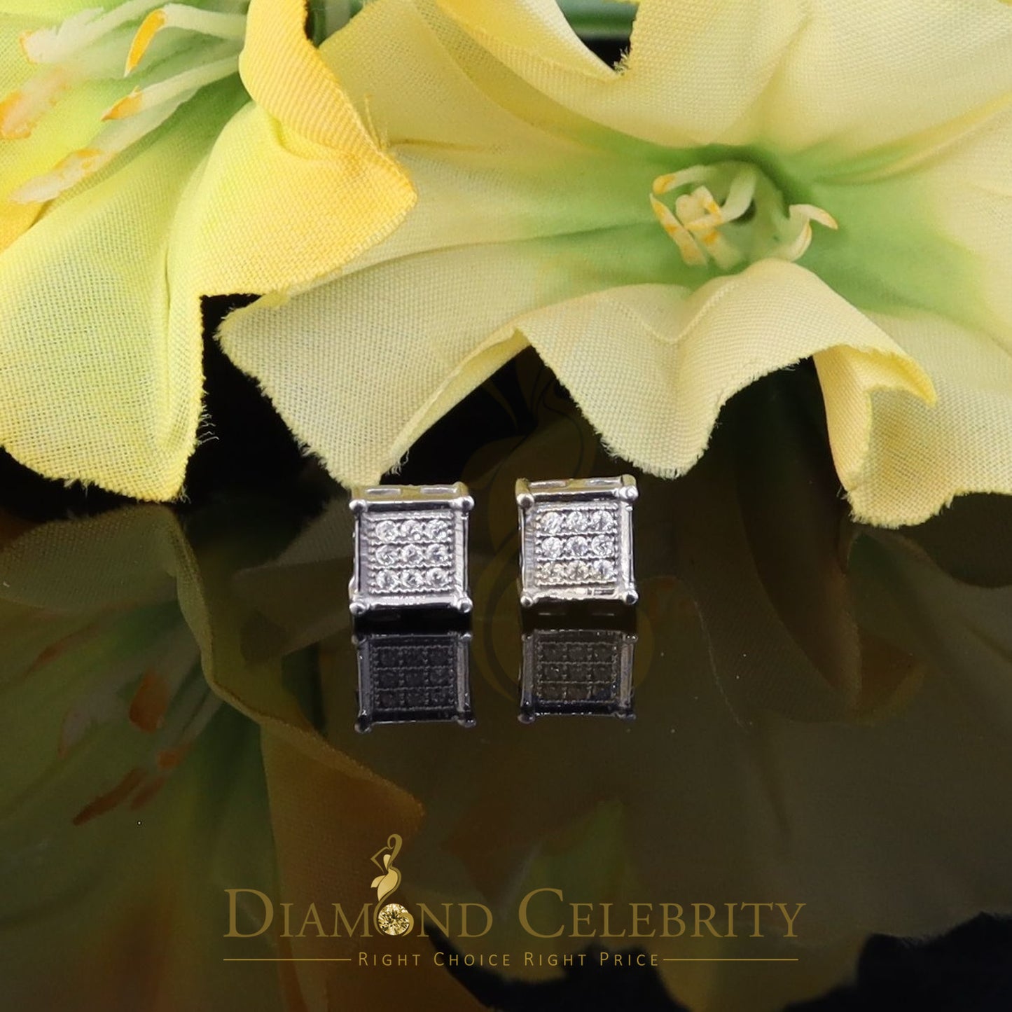 DiamondCelebritees White 925 Silver Men's & Women's Elegant 0.14ct Cubic Zirconia Square Earrings