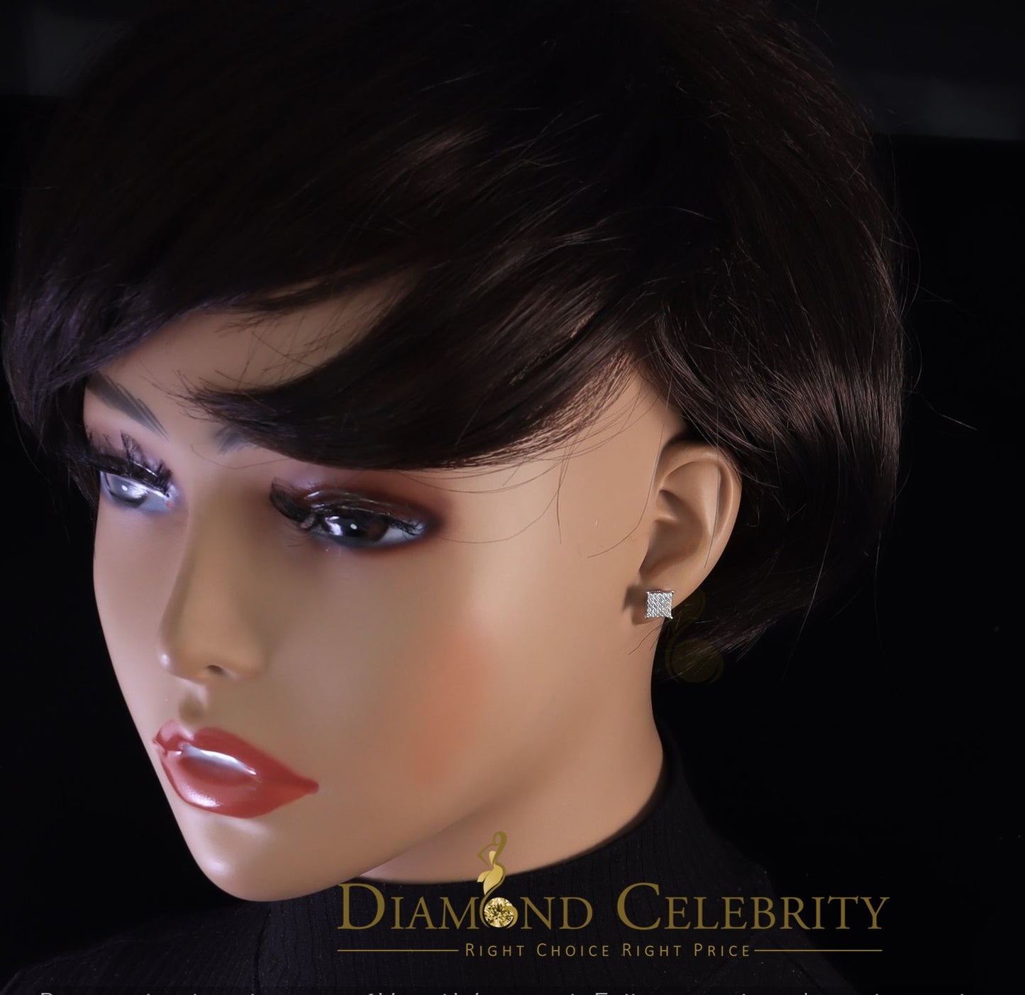 DiamondCelebritees White 925 Silver Screw Back 0.50ct Cubic Zirconia Square Women Stud Earrings