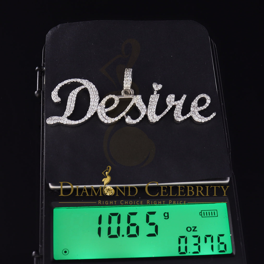DiamondCelebritees White Desire Letter 925 Sterling Silver Pendant 2.49ct Cubic Zirconia stone