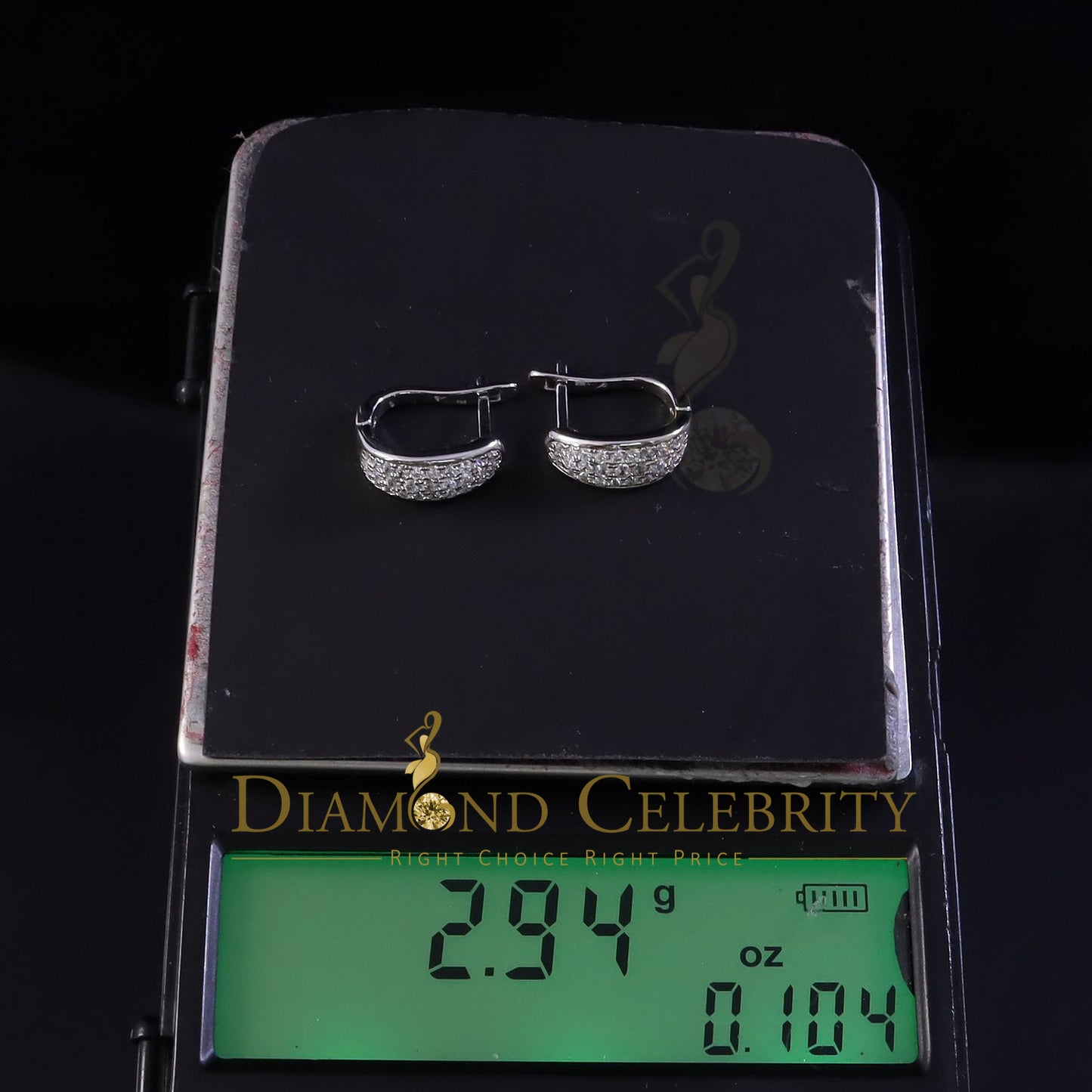 DiamondCelebritees white Gold 925 Sterling Silver Mens hip hop Iced 3 row Huggie Hoop earrings