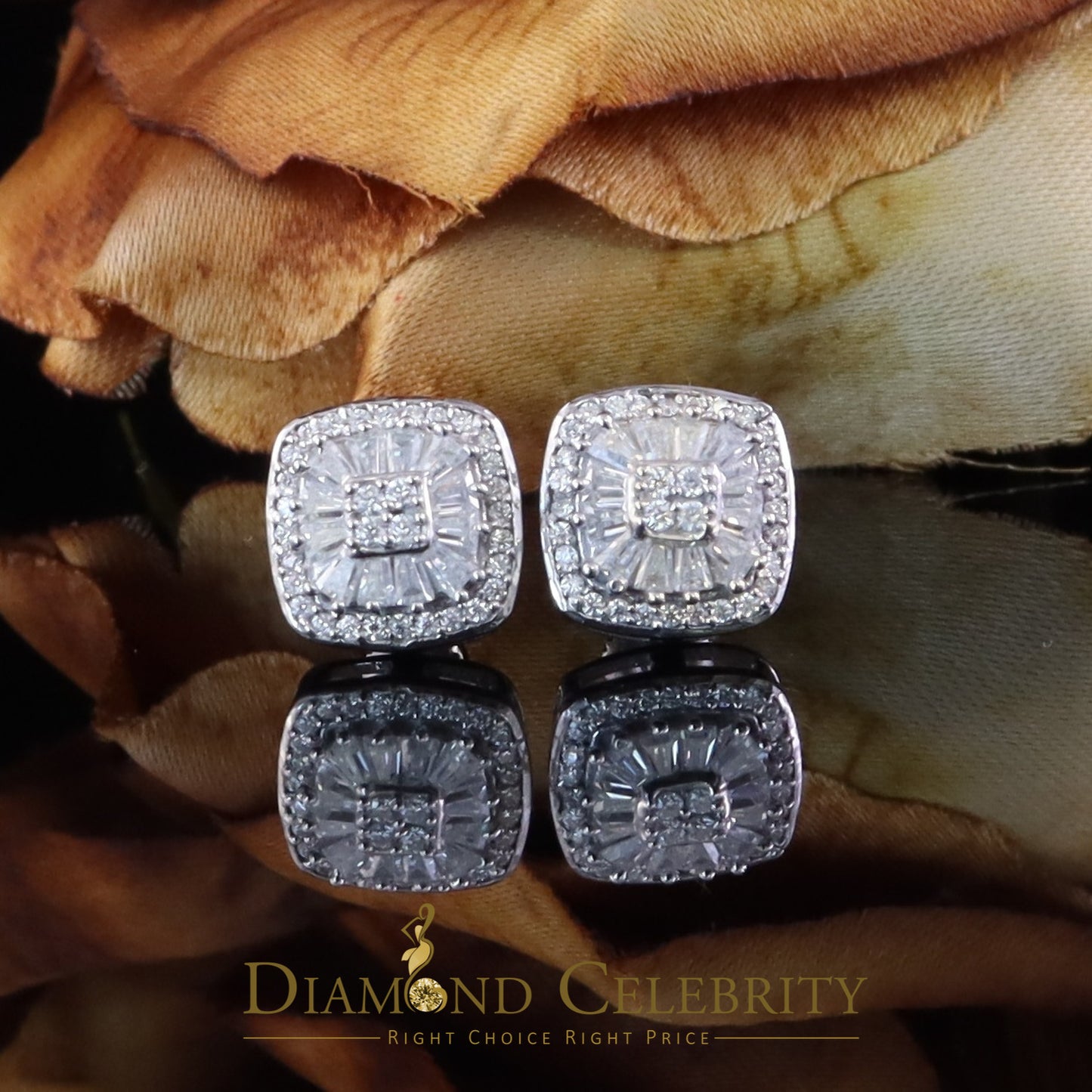 Diamondcelebritees White Square 925 Silver 1.00ct VVS 'D' Moissanite Stud Earring Men's/Womens