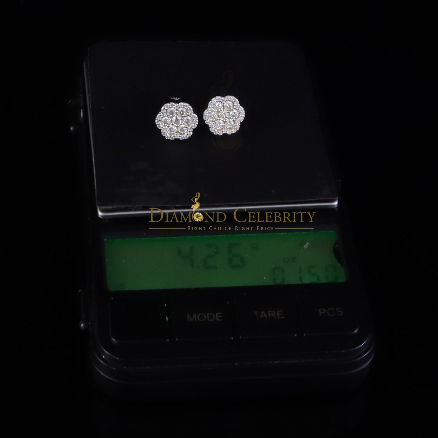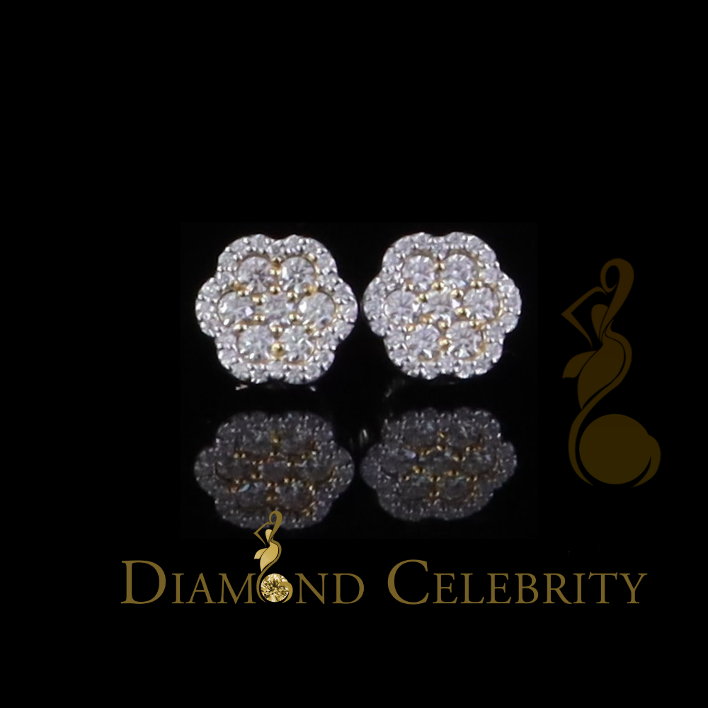 Diamondcelebritees White /Yellow Flower Silver 1.50ct VVS 'D' Moissanite 925 Earrings Men's/Womens