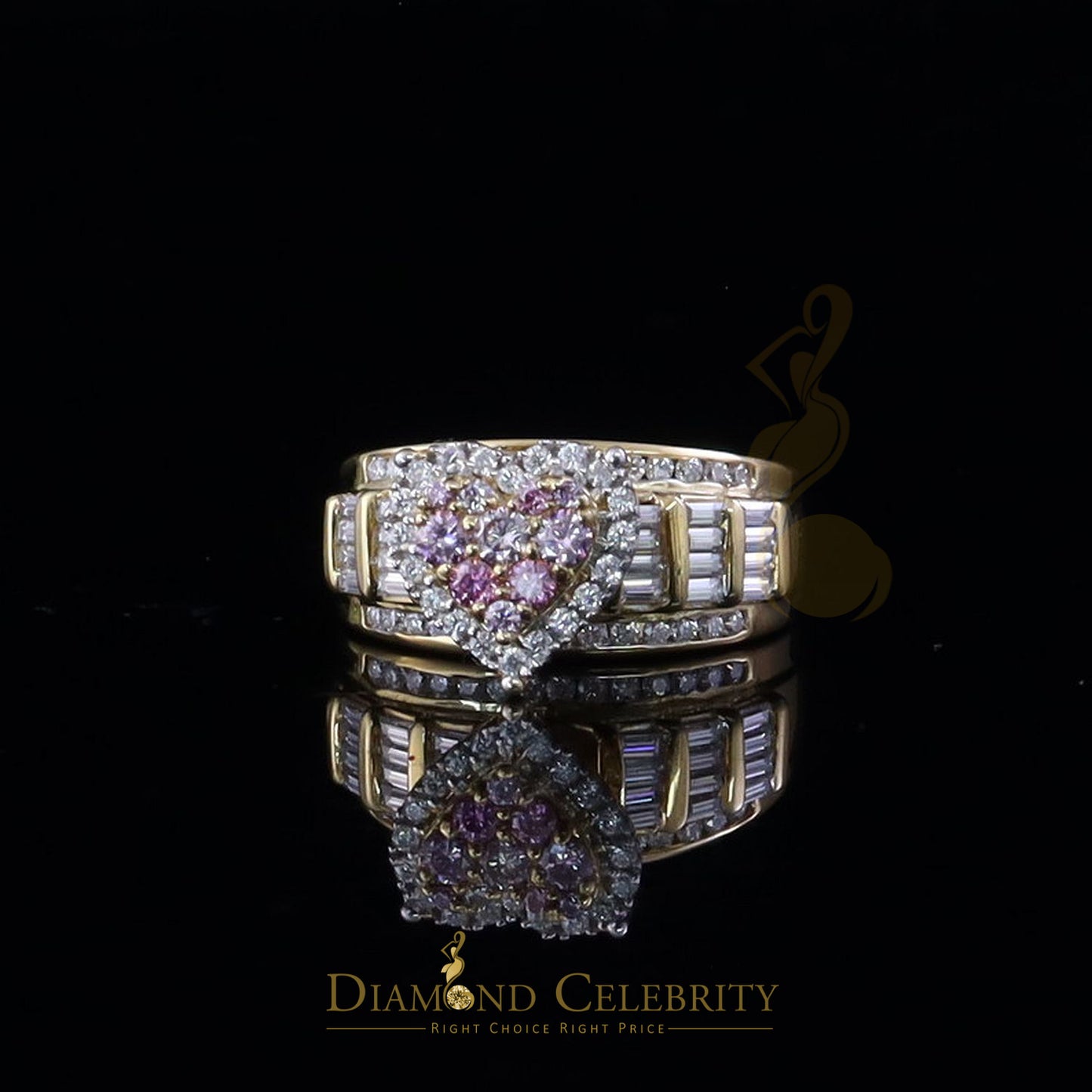 DiamondCelebritees Women 2.50ct 925 Silver VVS 'D' Pink Moissanite Yellow Cinderella HEART Ring SZ 7
