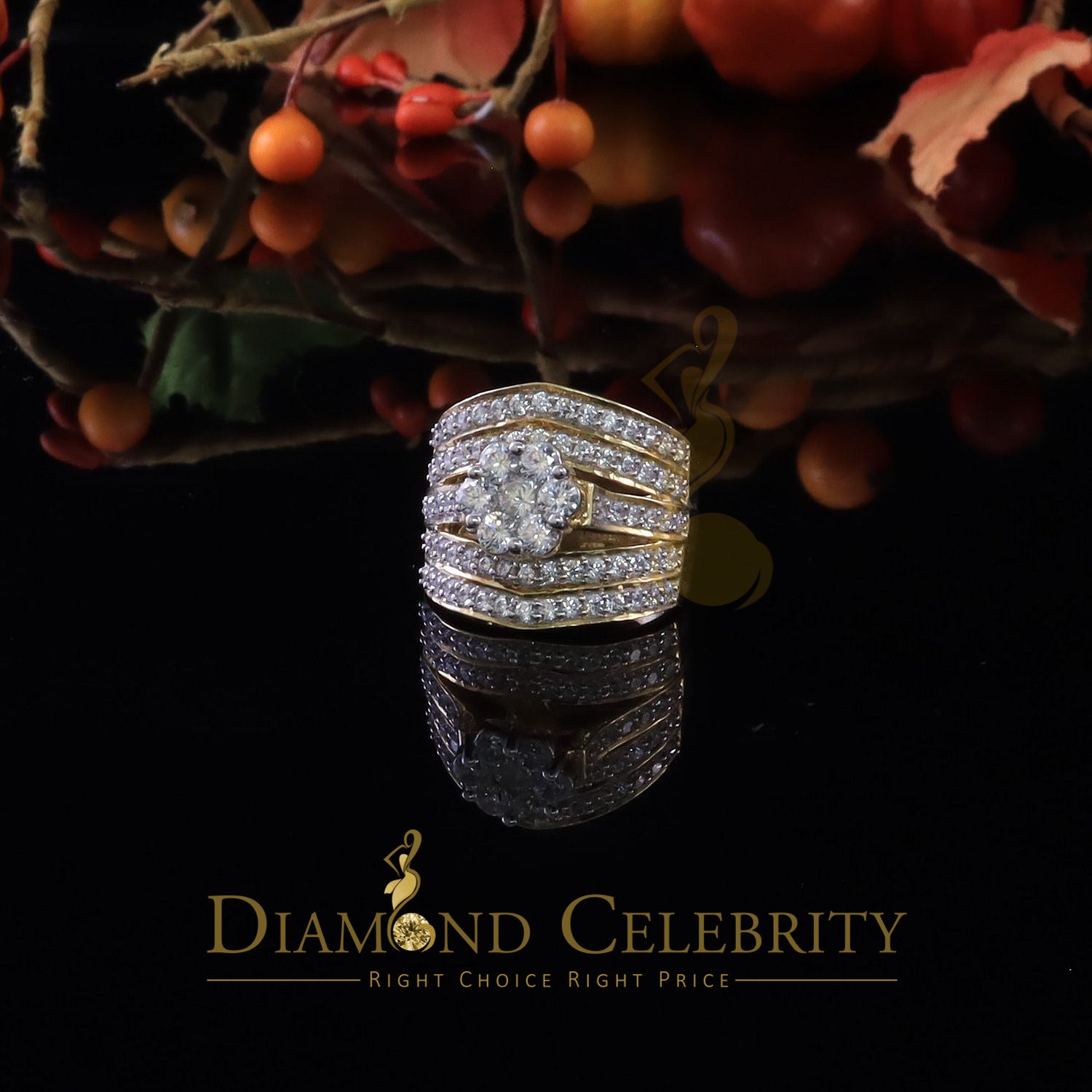 DiamondCelebritees Women's 6.00ct. Cubic Zirconia 925 Yellow Sterling Silver Floral Ring Size 8.5