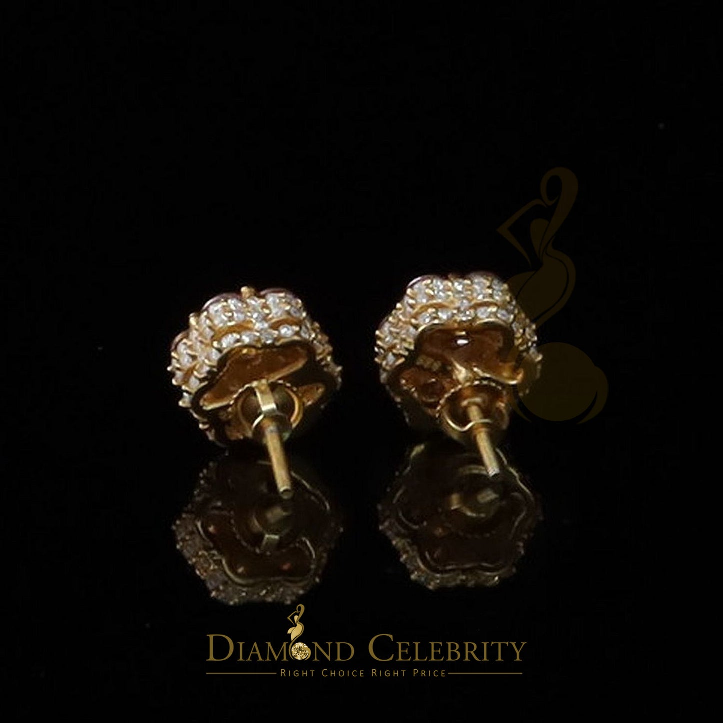 DiamondCelebritees Women's 925 Silver Yellow 2.50ct VVS 'D' Pink Moissanite Floral Stud Earrings