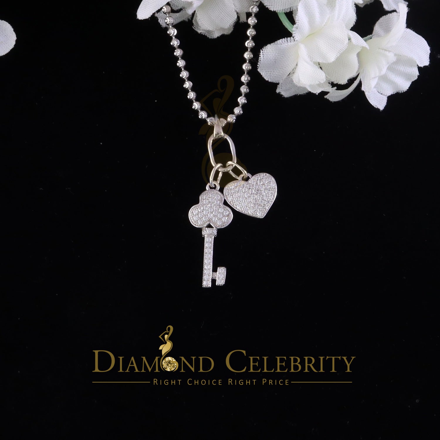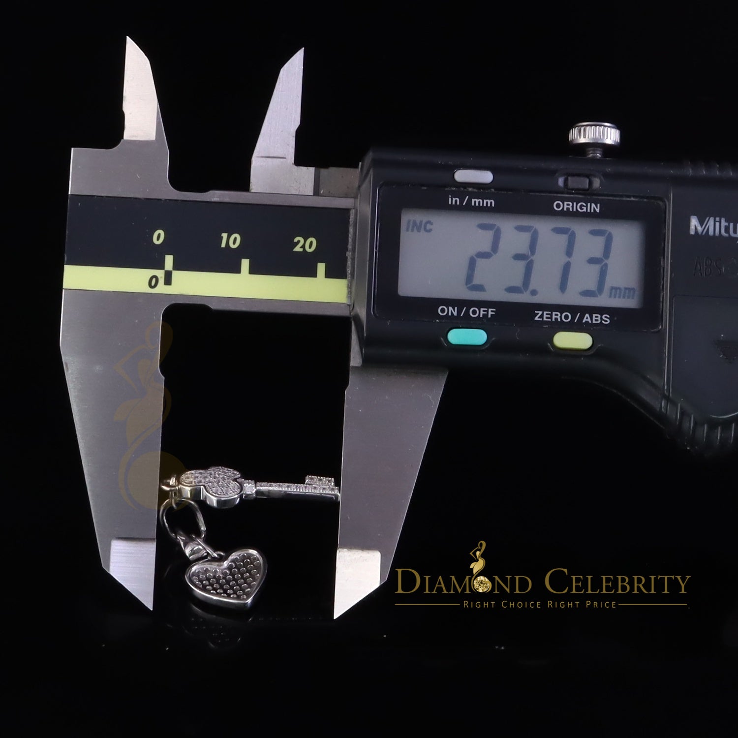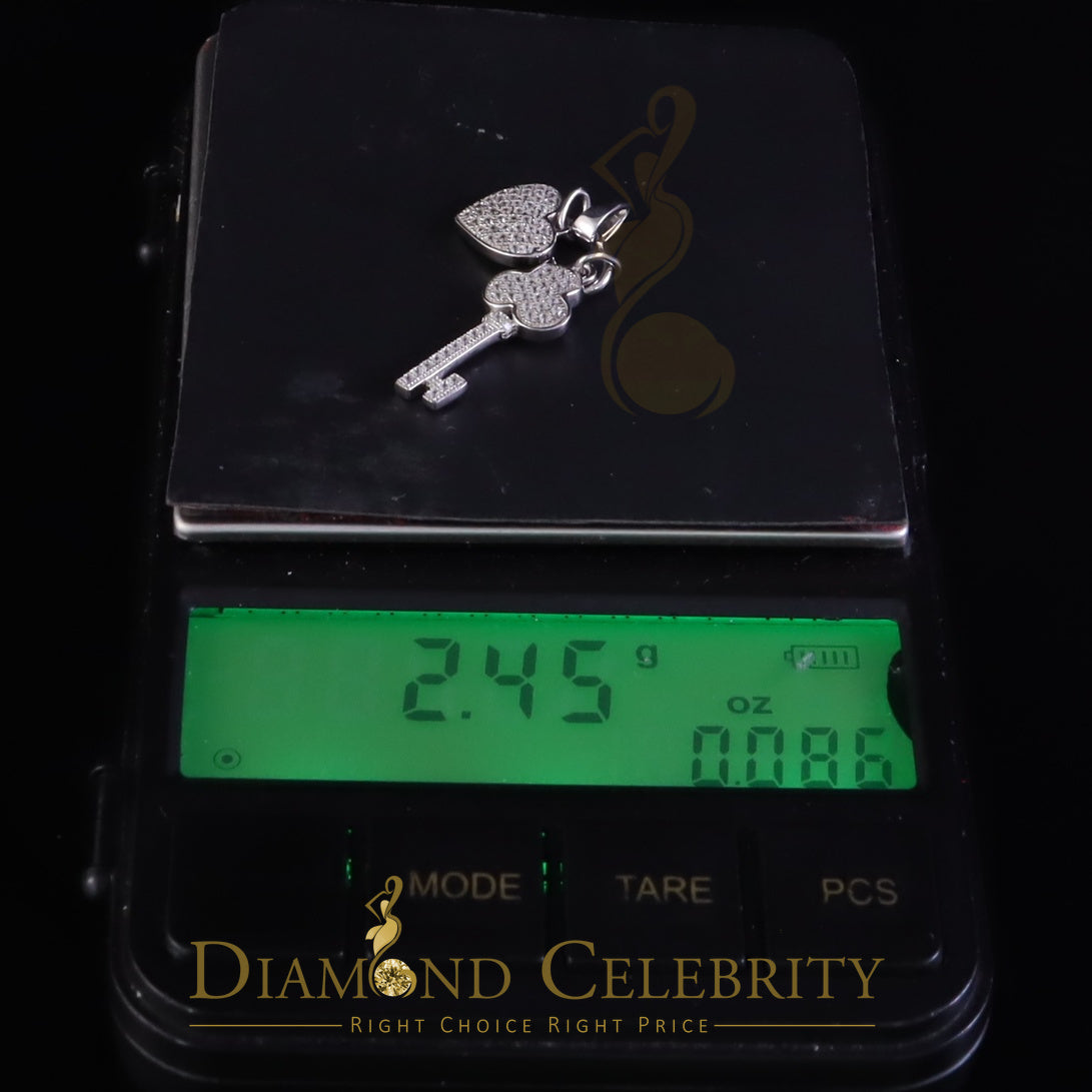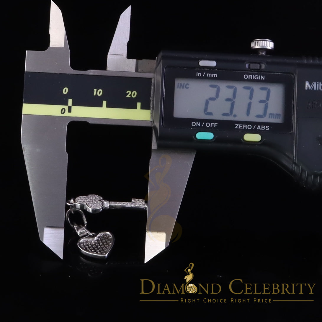 DiamondCelebritees Womens Heart Key White Sterling Silver Shape Pendant with 0.50ct Cubic Zirconia