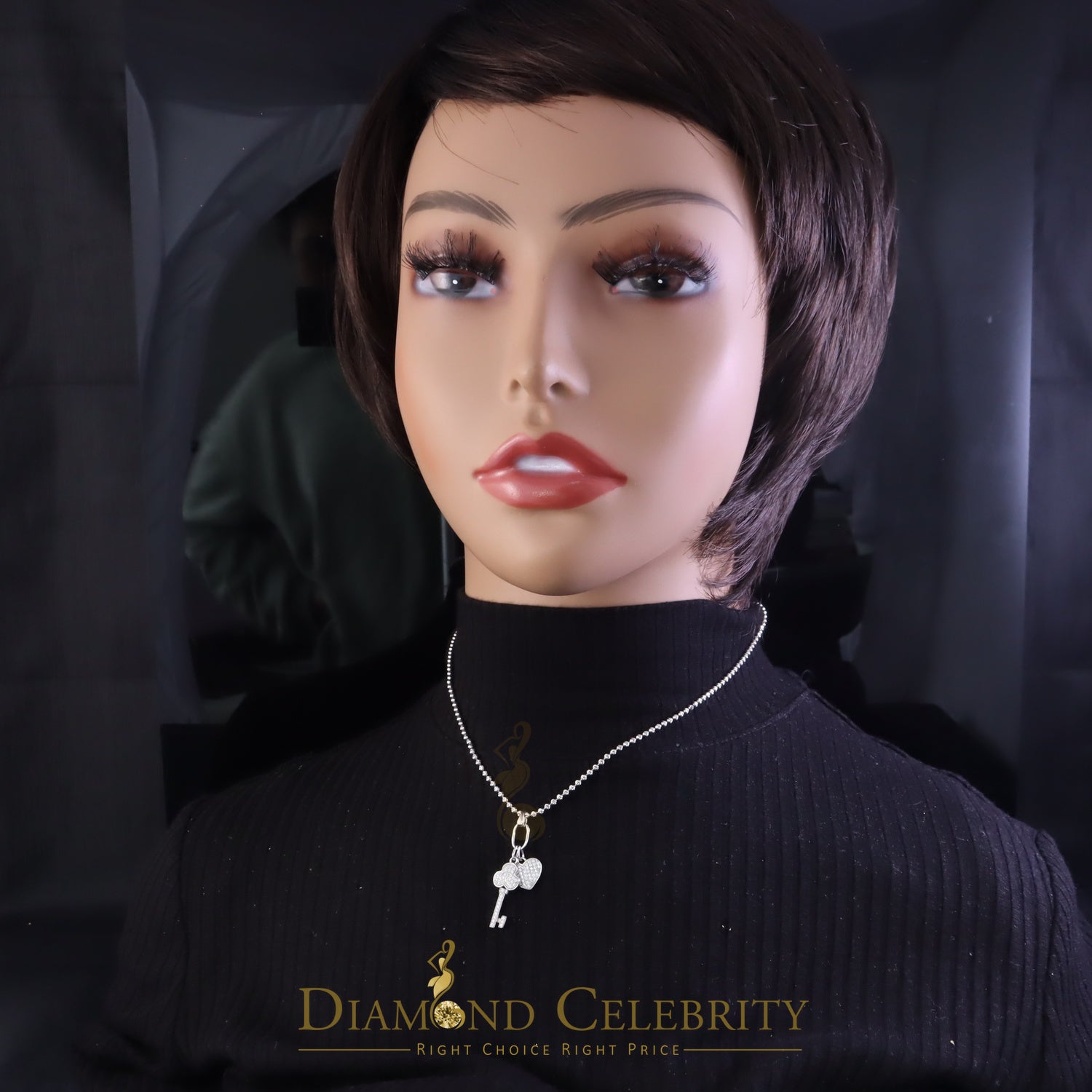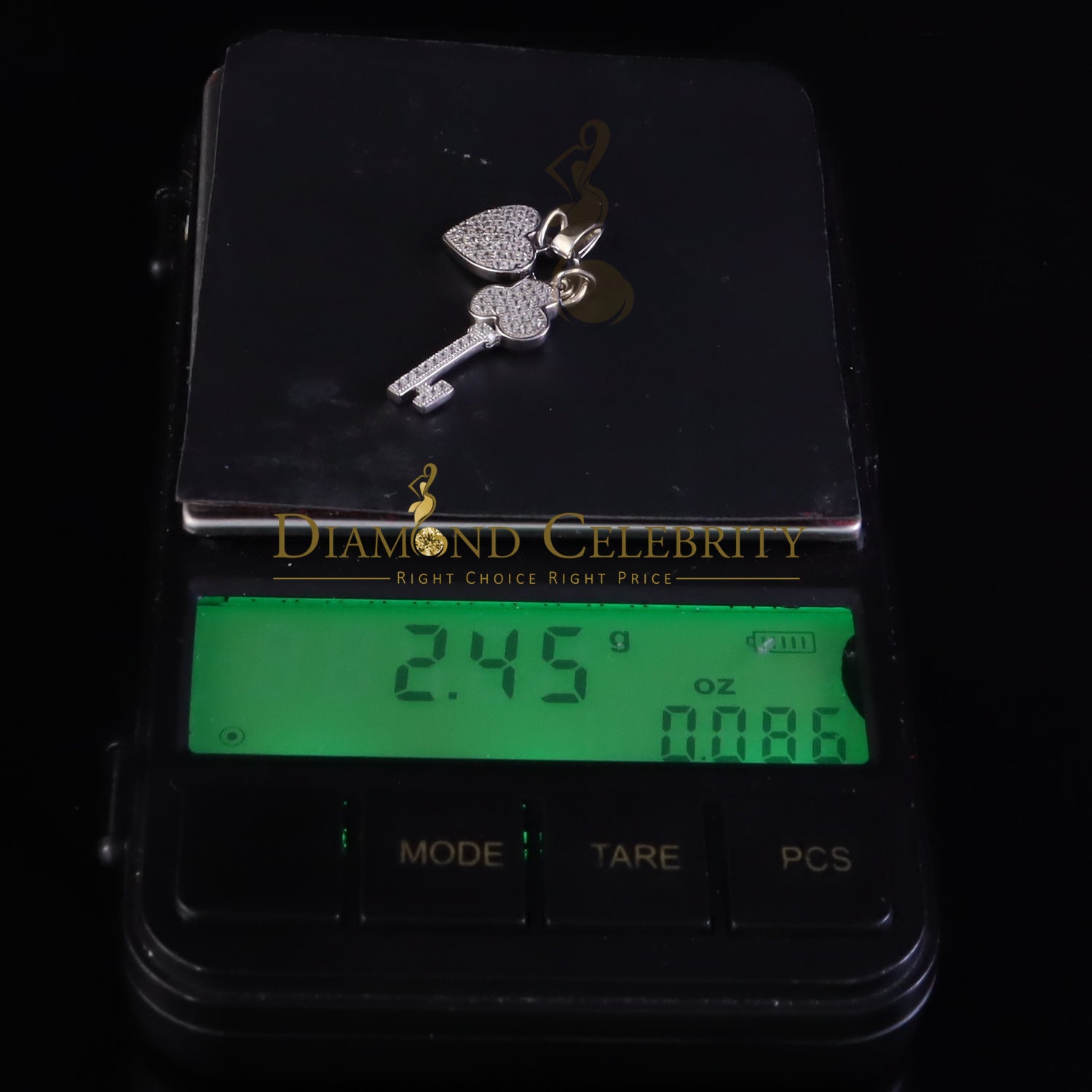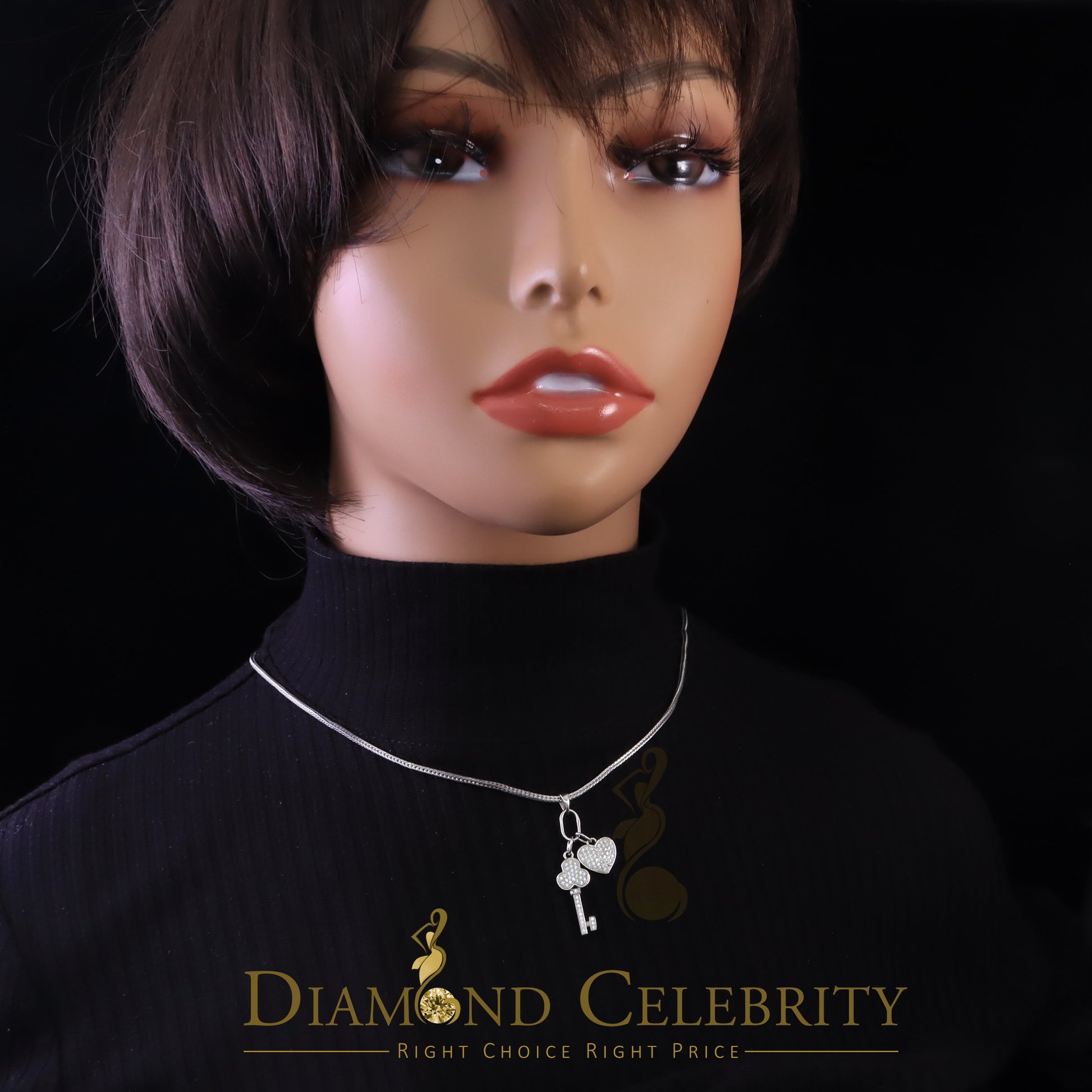 DiamondCelebritees Womens Heart Key White Sterling Silver Shape Pendant with 0.50ct Cubic Zirconia