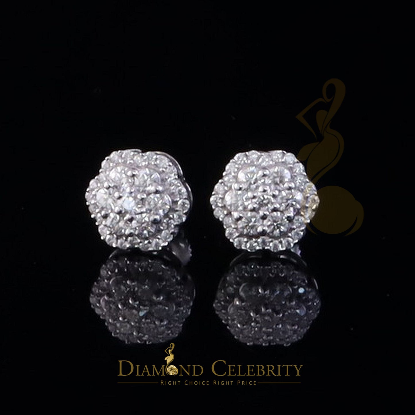 Diamondcelebritees Women's/Men's 925 Silver White 0.50ct VVS 'D' Moissanite Floral Stud Earrings