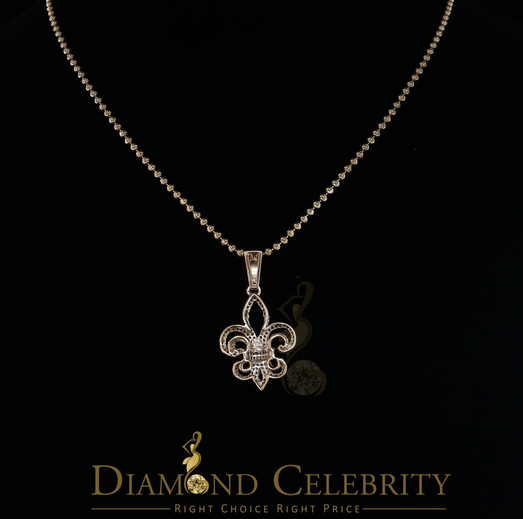 This new is a stylish unisex piece made of 925 sterling silver with a White metal color. It features a 0.93ct AAA cubic zircon April birthstone, giving it a good shiny appearance similar to a real diamond. The Fleur de Lis pendant weighs 2.91 gm and is designed for both women and men, making it suitable for all genders. Please note that the chain is not included, and the bell size for the chain is 7X5. The Fleur de Lis pendant comes in new condition with tags and original packaging, and the metal is rhodium plated and nickel-free for an enhanced appearance and reduced tarnishing. Detailed pictures are available for more information. If you have any further questions, please feel free to ask. Please note Chain dont comes with chain . We use chain for the picture purpose to show how it look with the chain.
