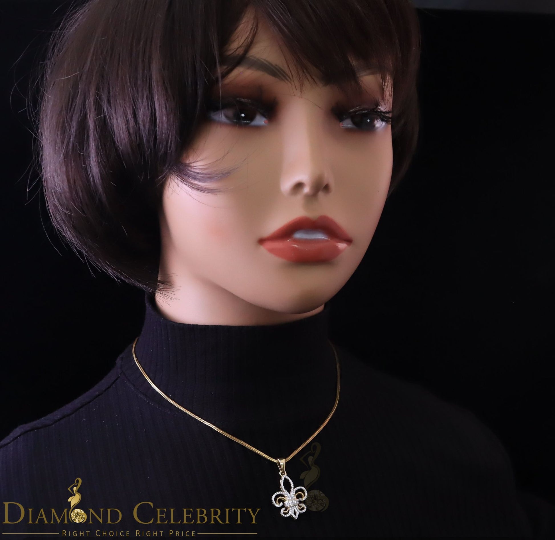 DiamondCelebritees Yellow 925 Sterling Silver Fleur de Lis Pendant with 0.93ct Cubic Zirconia Stone