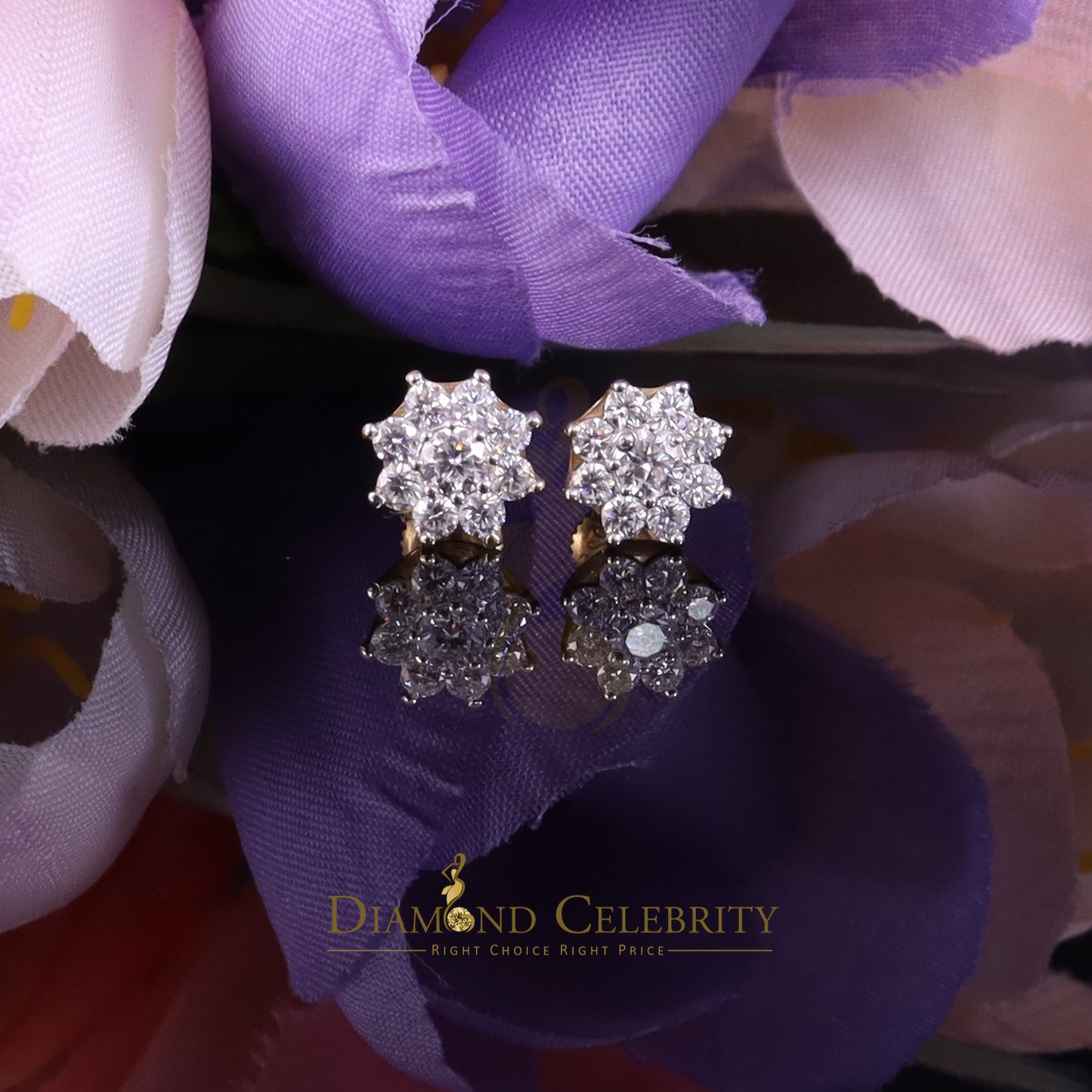 DiamondCelebritees Yellow Men's/Womens 925 Silver 1.00ct VVS 'D' Moissanite Floral Stud Earrings