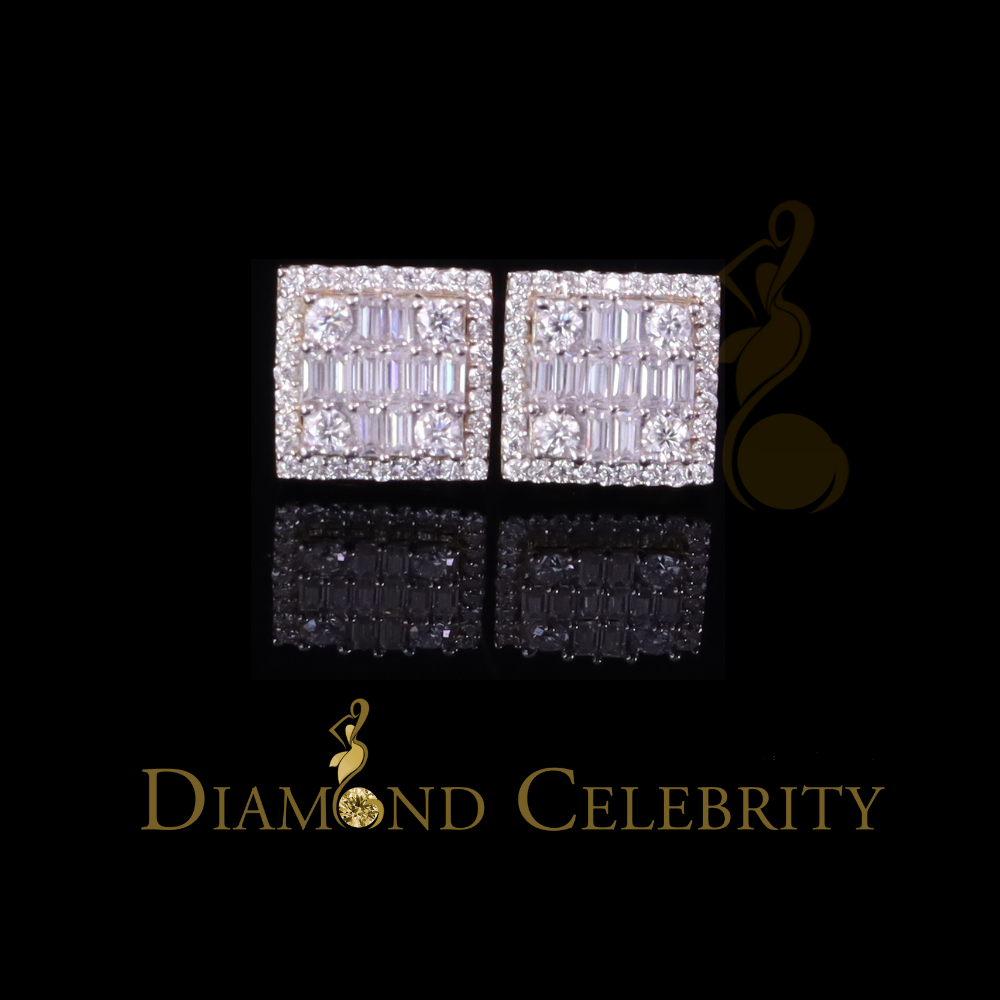 DiamondCelebritees Yellow Men's/Womens 925 Silver 1.00ct VVS 'D' Moissanite Square Stud Earrings