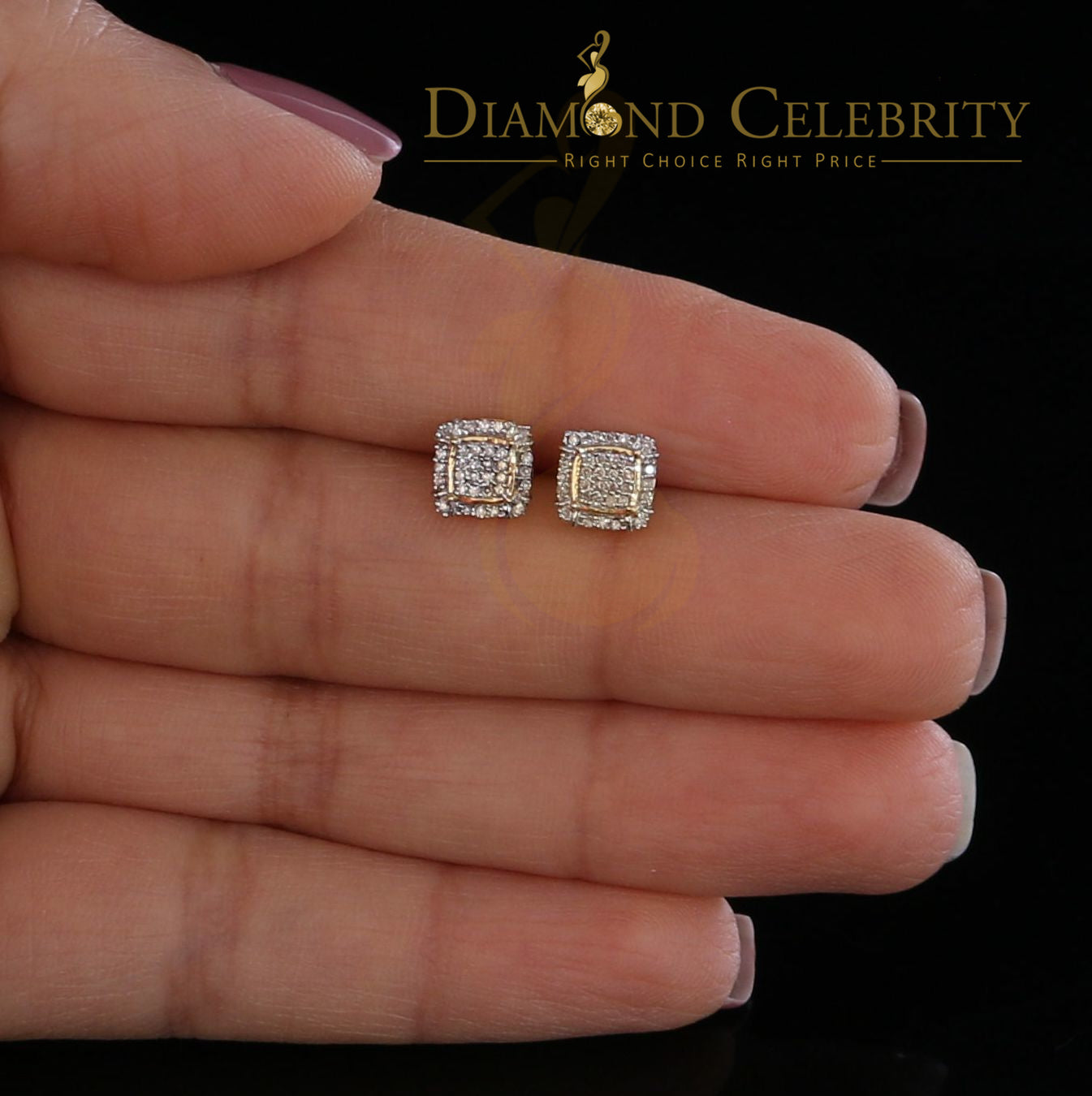 DiamondCelebritees10k Yellow Real Gold Square Stud Earrings with 0.15CT Real Diamonds