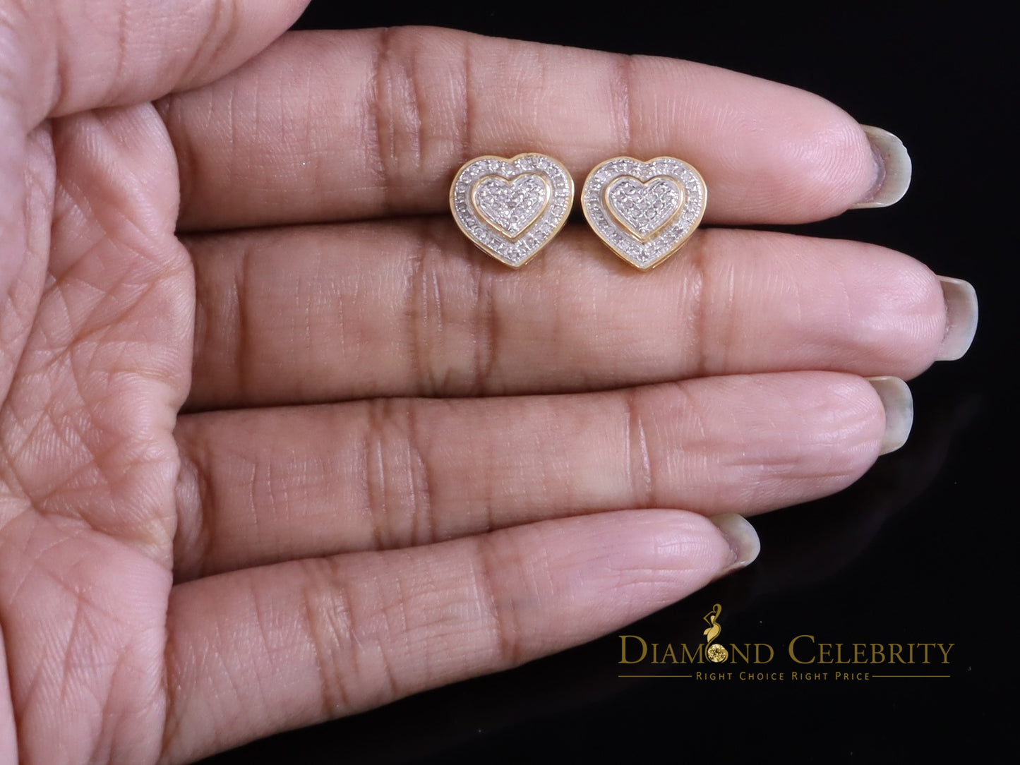 DiamondCelebriteesReal 10K Yellow Gold Heart Stud Earring with 0.25CT Diamond For Women And Men